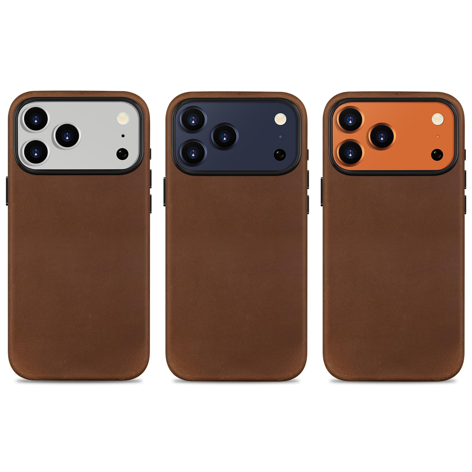Belemay Handcrafted Crazy Horse Leather Case for iPhone 17 Pro Max, Compatible with MagSafe, Vintage Aesthetic, Two-Tone Effect, Unique Patina, Camera Control Button Coverage (6.9"), Vintage Brown