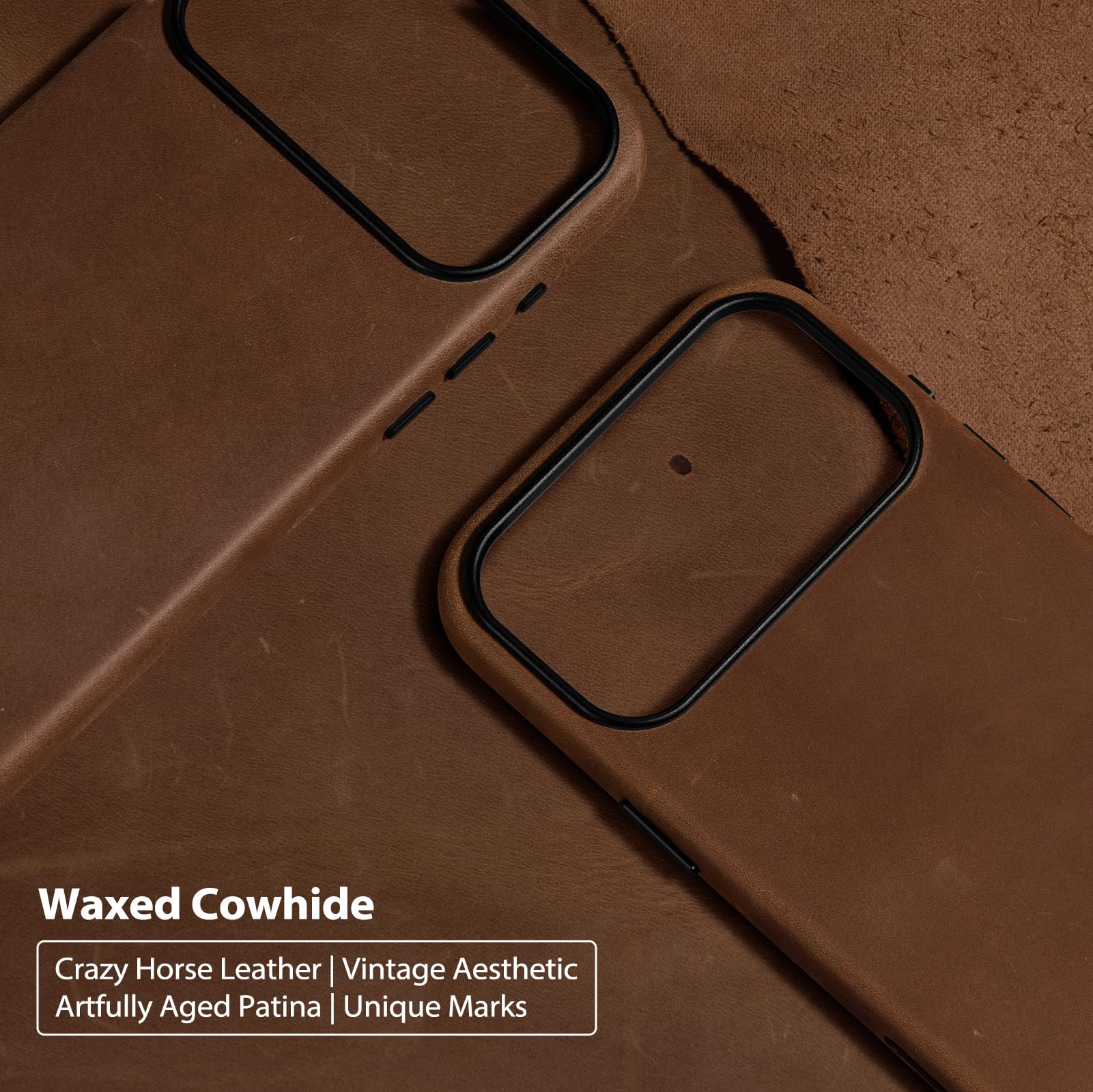 - Handcrafted Crazy Horse Leather Case: Two-Tone Effect: Handcrafted from full-grain, waxed Crazy Horse leather sourced from the USA, each case is naturally one of a kind. The leather features a visible grain, rich texture, and a natural two-tone finish that shifts with use and wear. Lined with soft microfiber to protect your phone from the inside out.