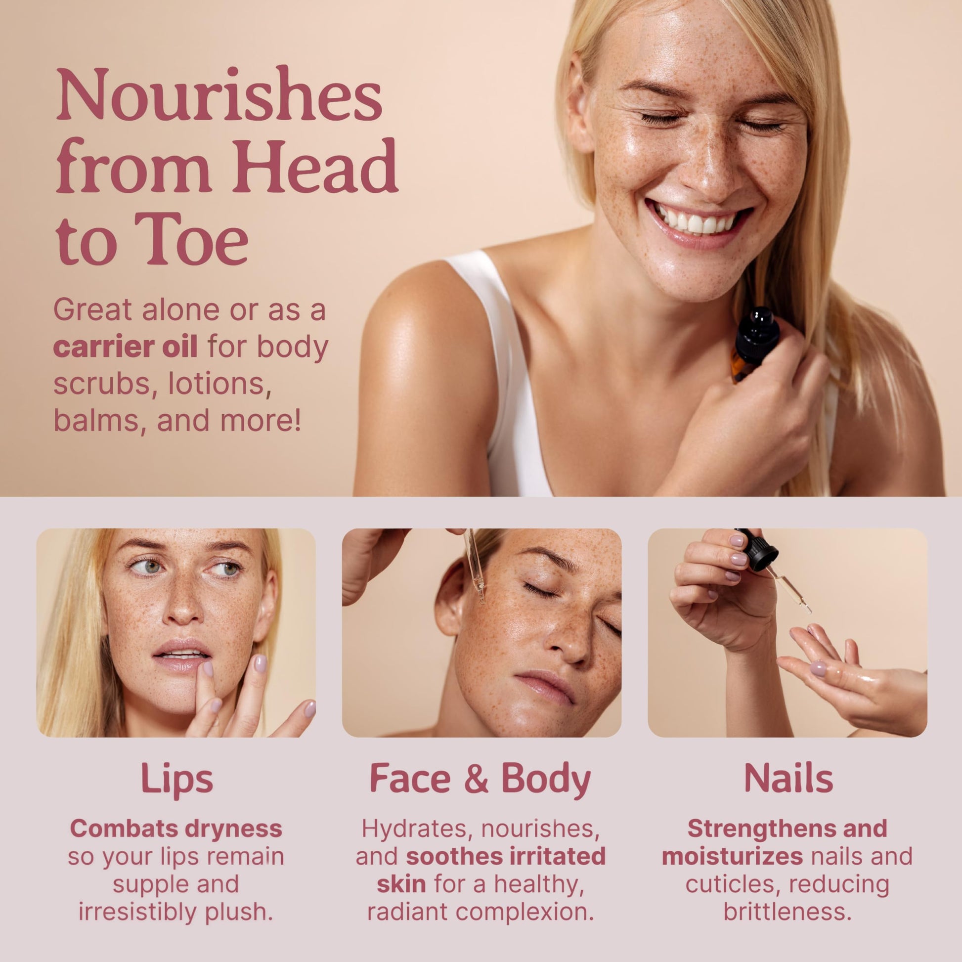 - ✔️ Skin Radiance Booster: Rich in Vitamin E and natural antioxidants to enhance skin’s glow and promote a smoother, firmer look.
