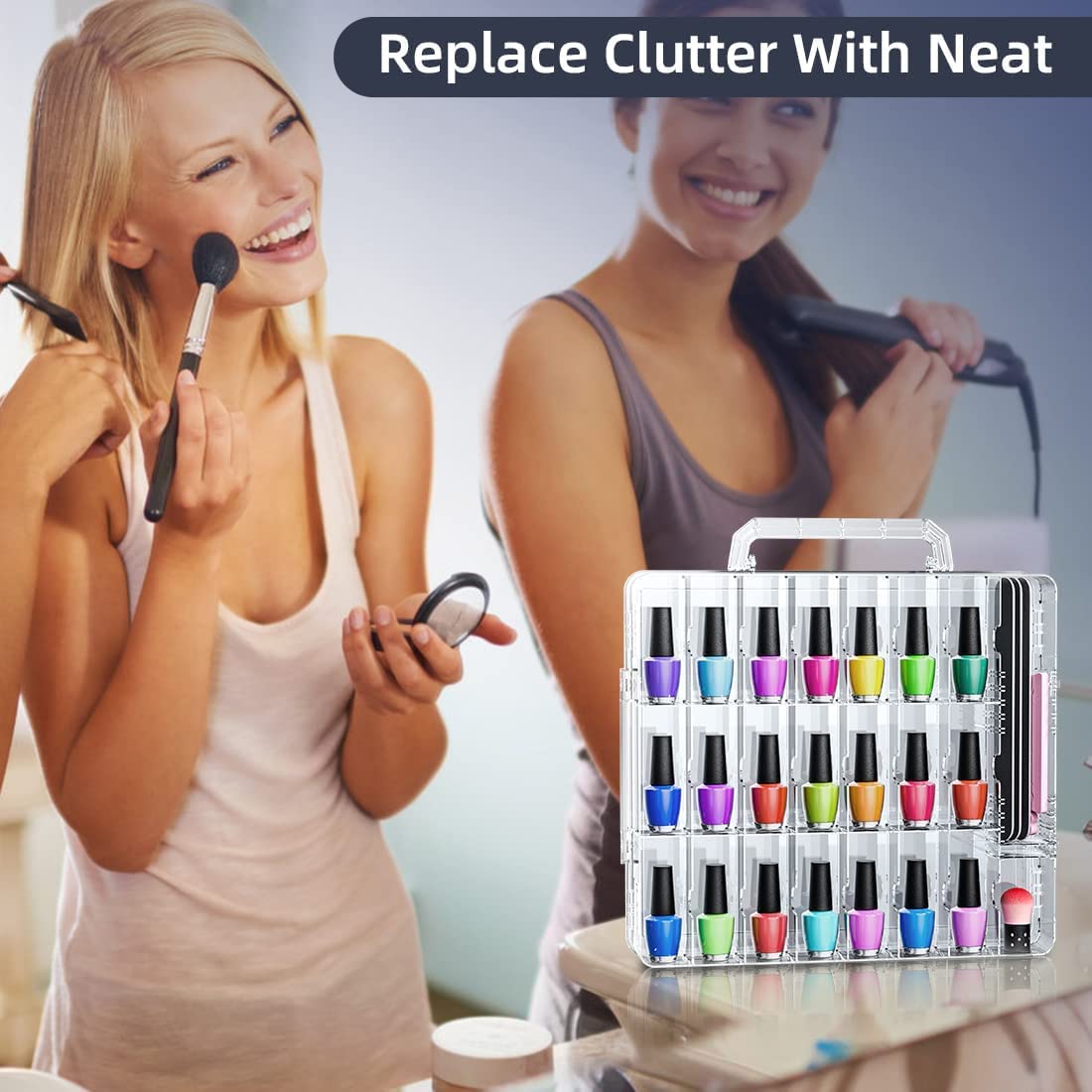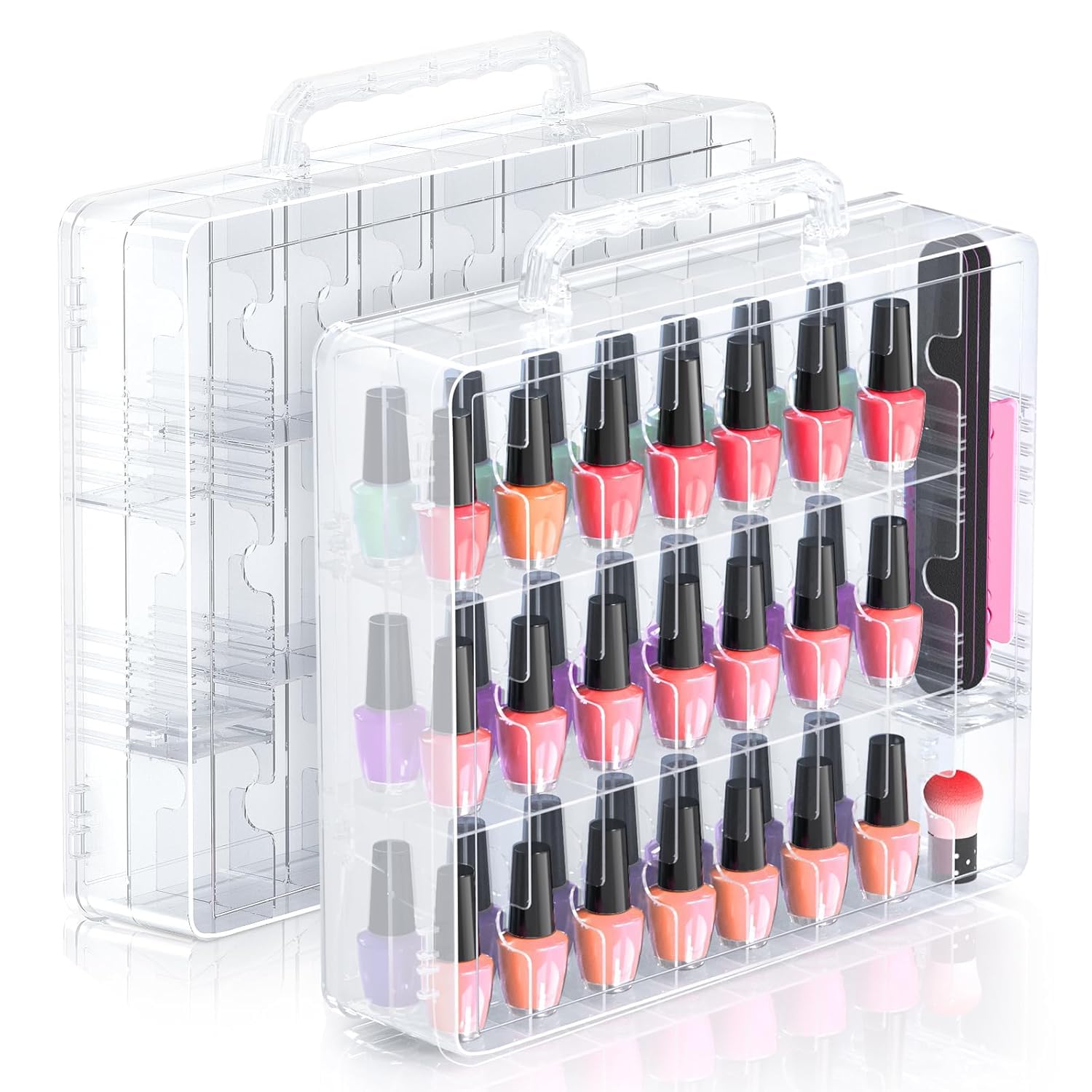 - Multi-functional Nail Polish Case: The nail polish set can hold 48 bottles of well-sorted nail polish, and the front and back of the box can be opened. It has 6 adjustable partitions, so you can place other nail and pedicure tools such as nail clippers, nail files, nail brushes, etc