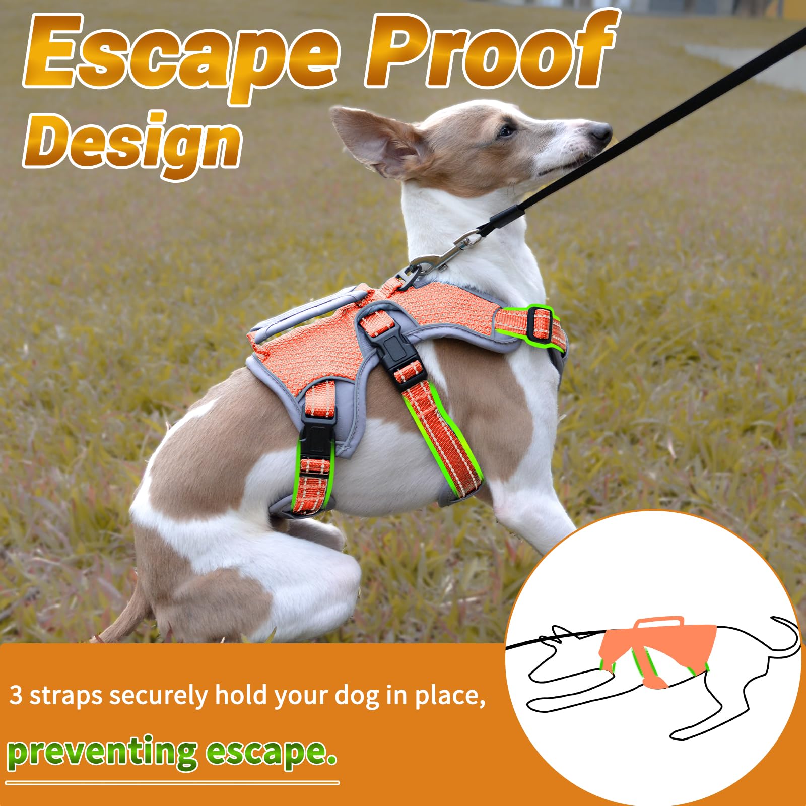 BELPRO Escape Proof Dog Harness, Multi-Use Support Dog Vest, No Pull Reflective Adjustable Pet Vest with Padded Handle, Dog Walking Harness for Big/Active Dogs (Orange,M)