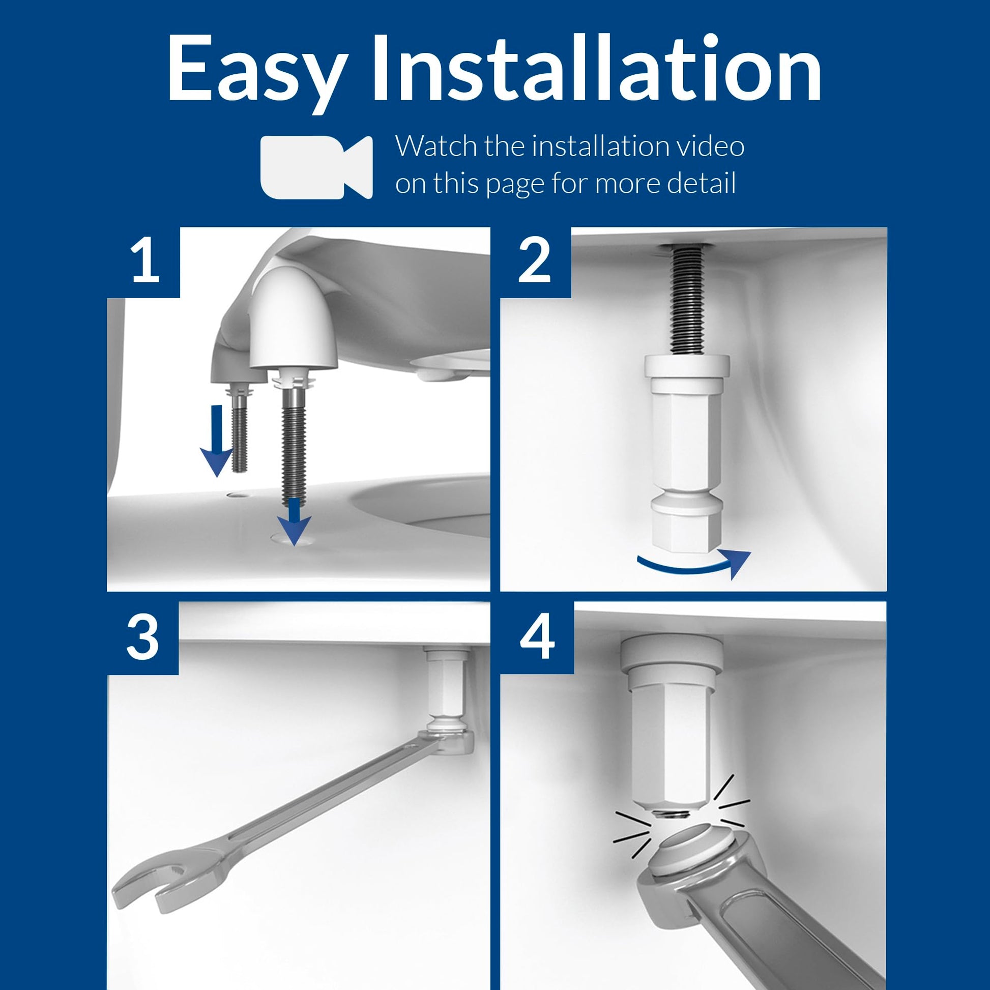 - Open front less cover, elongated bowl, stainless steel check hinge
