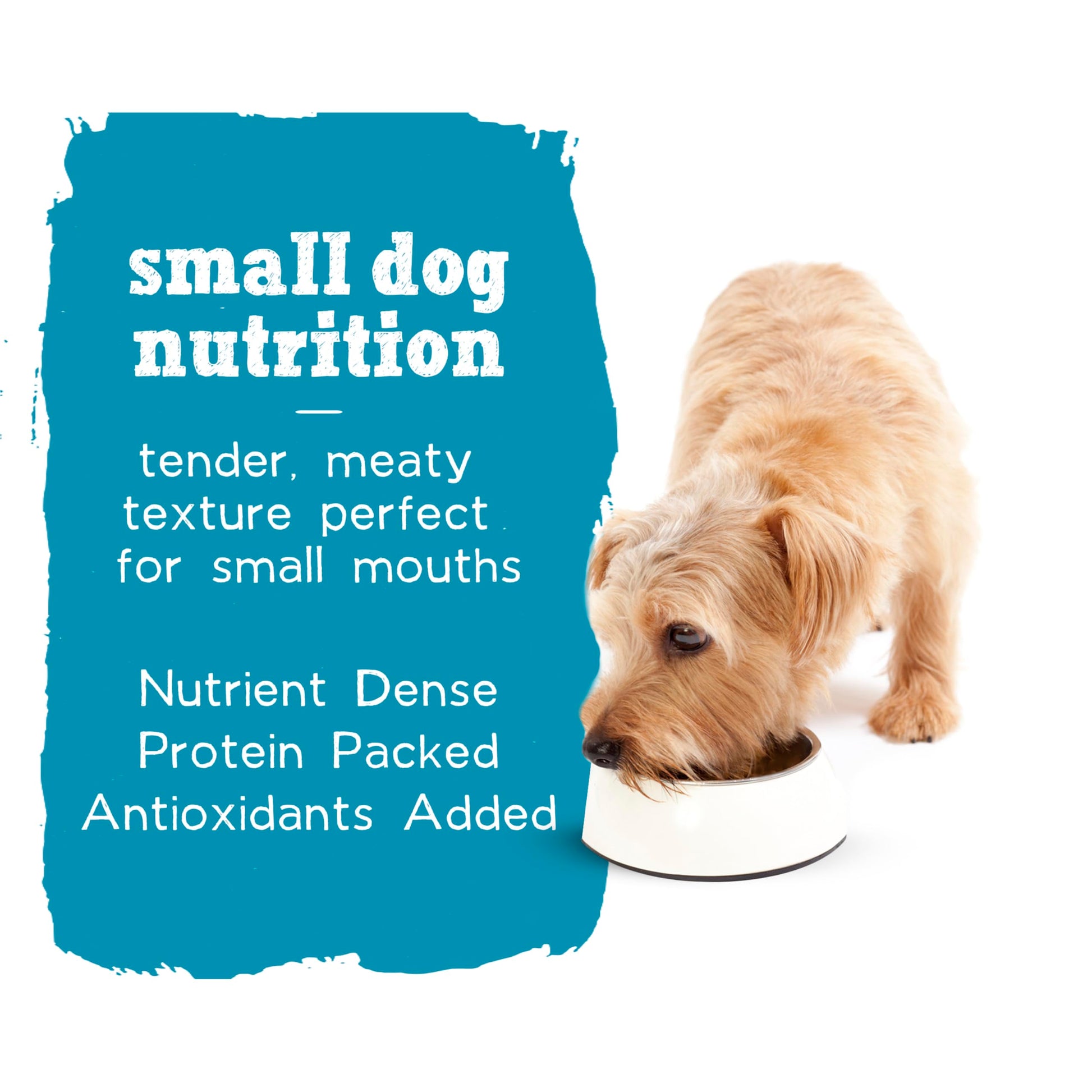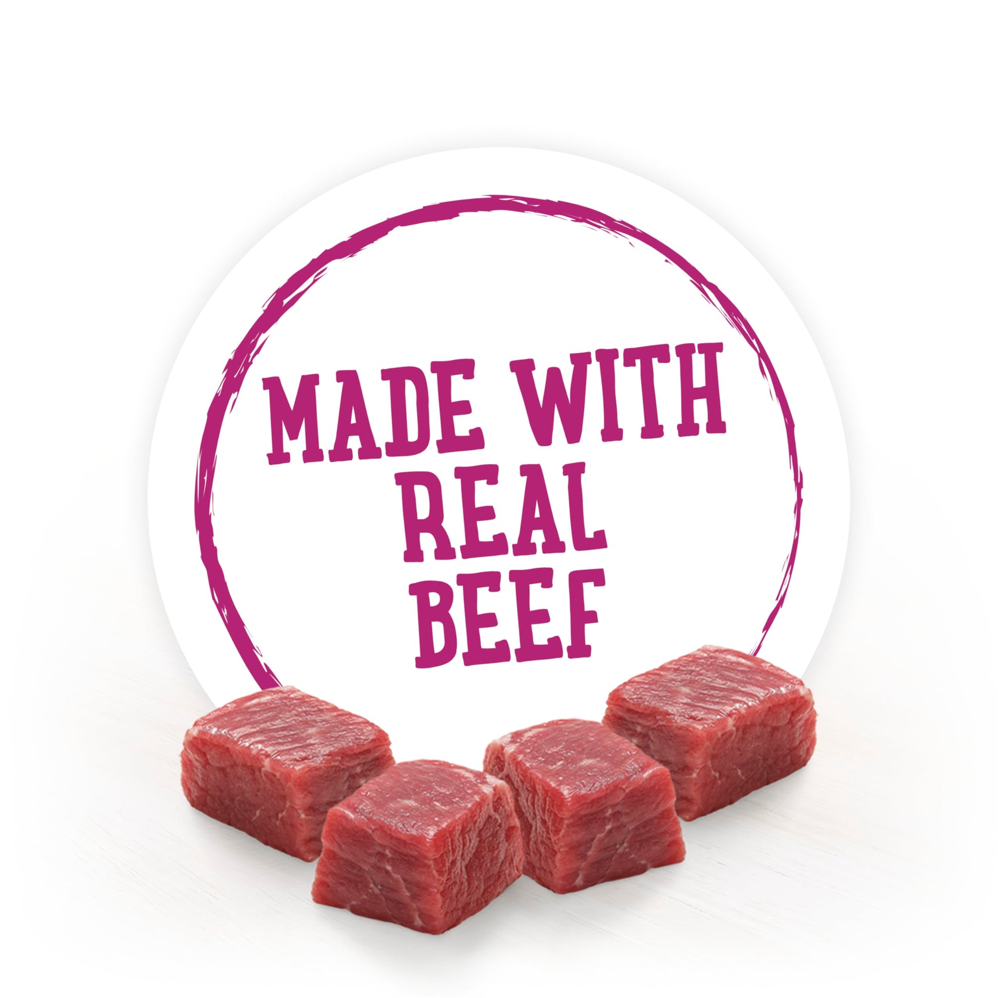 Details: Give your little dog the big meaty flavour they crave. Made with real beef, these perfectly sized meals are full of protein and offer 100% complete and balanced nutrition for your adult small dog. What’s more, every meal’s high-quality nutrition and great taste comes with no artificial colours, flavours or preservatives. Plus, the delectable, tender bites are easy-to-chew for small mouths.