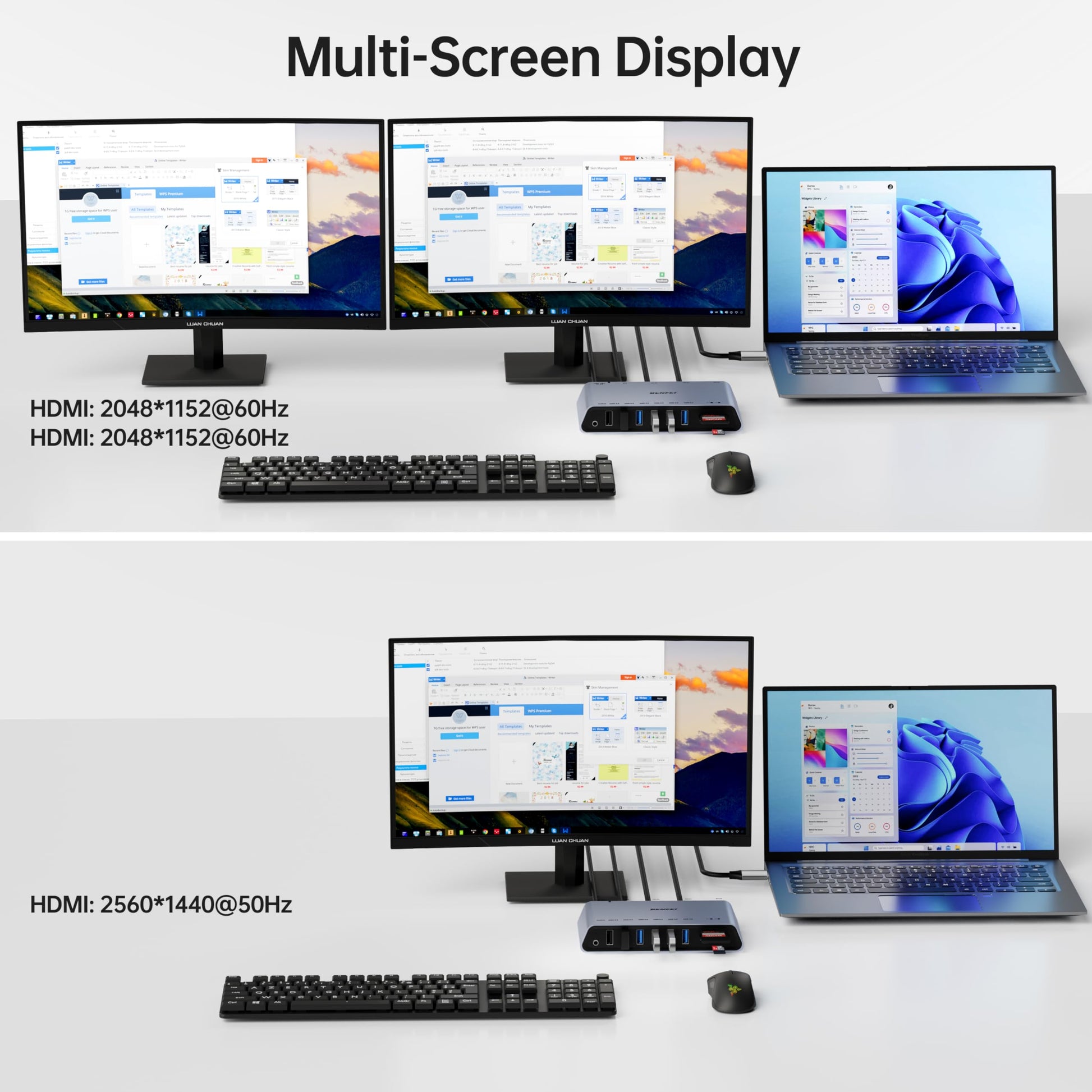 - Dual HDMI Output: With DisplayLink 3900 Chipset, streams from laptop/computer to the external Display with HDMI slot, enjoy 3 different screen at the same time, very convenient to your work. Supports up to 2560*1440@50Hz, 1920x1080@60Hz (1080p Full HD) including 720p, 1600x1200, 1280x1024 for high definition monitors or projectors; ✅ Note: Please install the driver first, if other usb-hdmi driver exists, please unstall them before.