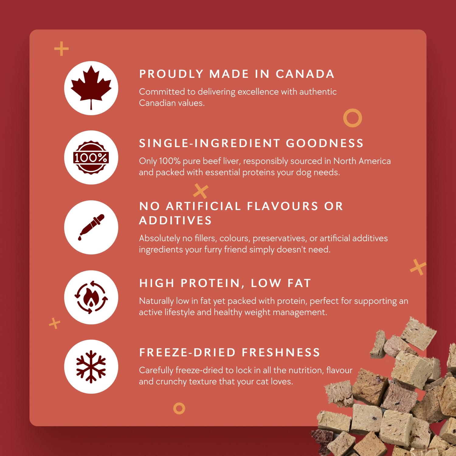 - Freeze Dried to maintain the flavor, aroma, and freshness dogs crave