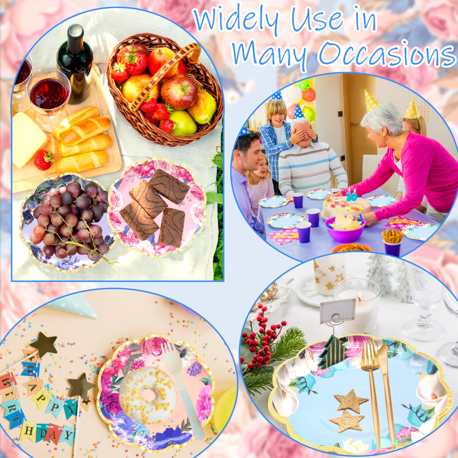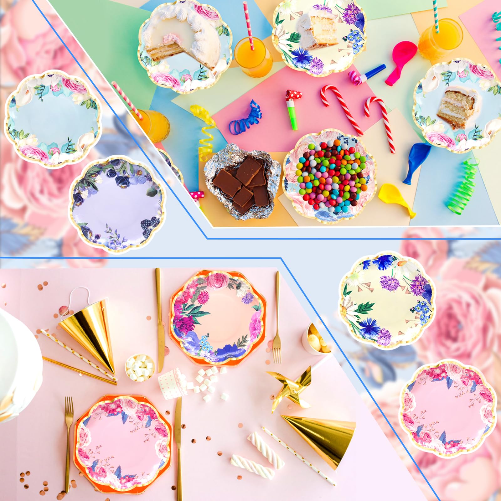 Benvo Floral Plates Disposable 60 Pack Paper Plates 9 Inch Dessert Plates Flower for Tea Party Garden Party Baby Shower Bridal Shower Birthday Wedding Decorations(6 Styles)