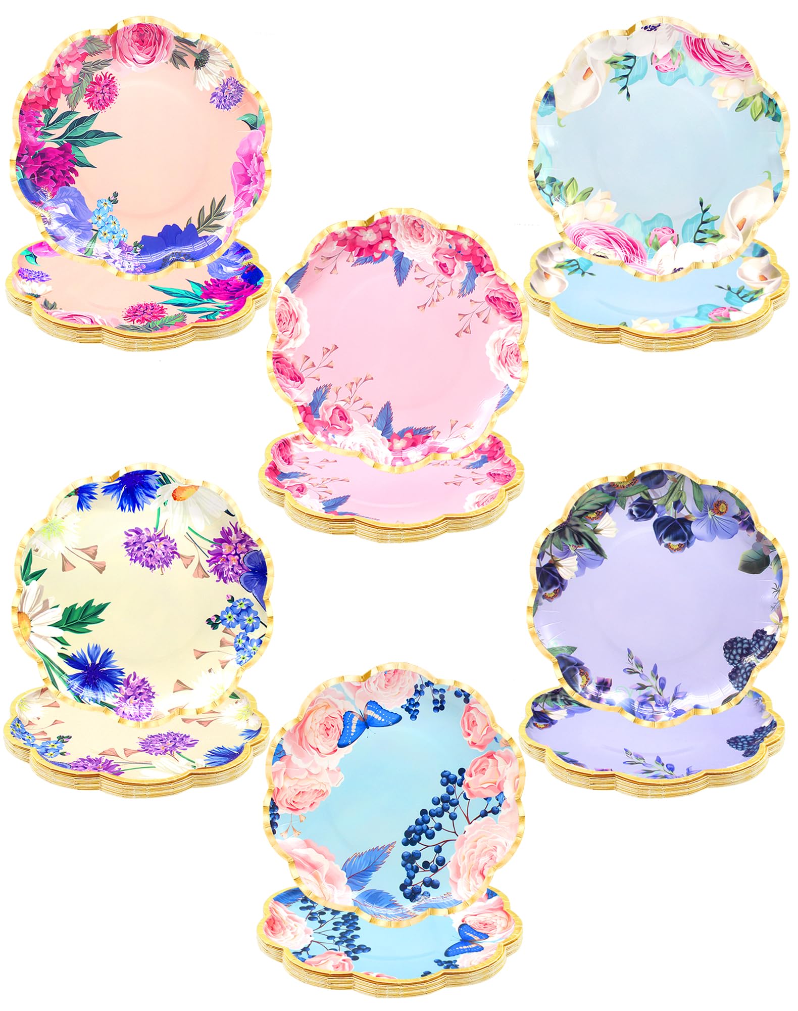 - What You Can Get- This party supply pack contains 60 set of floral paper plates. Designed in 6 assorted flower styles and colors, one style contains 10 plates, each plate is 9 inch in diameter. Sufficient quantity to meet your multiple needs.