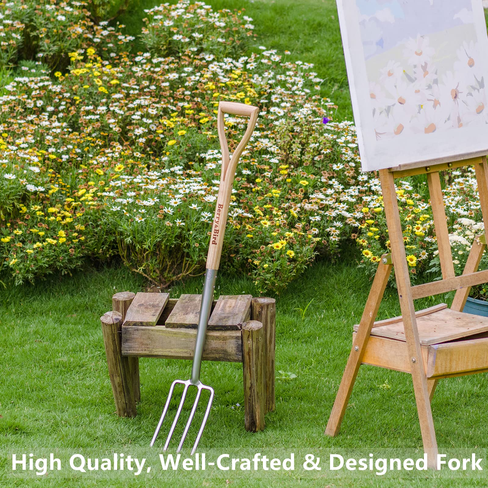 Berry&Bird Garden Digging Fork, 37.4" Stainless Steel Garden Spading Fork with D-Grip Handle, 4-Tine Heavy Duty Long Handled Pitchfork with Ash Wood Handle for Digging, Planting, Aerating, Cultivating