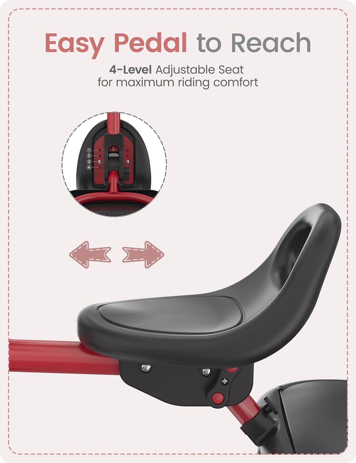 besrey Kids Tricycles Age 18 Month to 5 Years, Toddler Tricycle Kids Trikes Tricycle, Gift Toddler Tricycles for 2-5 Year Olds, Gift & Toys for Boy & Girl, Trikes for Toddlers, Red