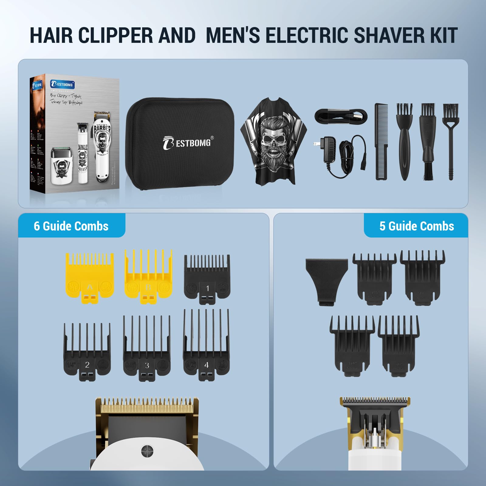 BESTBOMG Hair Clippers for Men Professional, Beard Trimmer Kits & Sets, Electric Shavers, Hair Clippers & Trimmer Ceramic T-Blade, for Barber, for Gifts