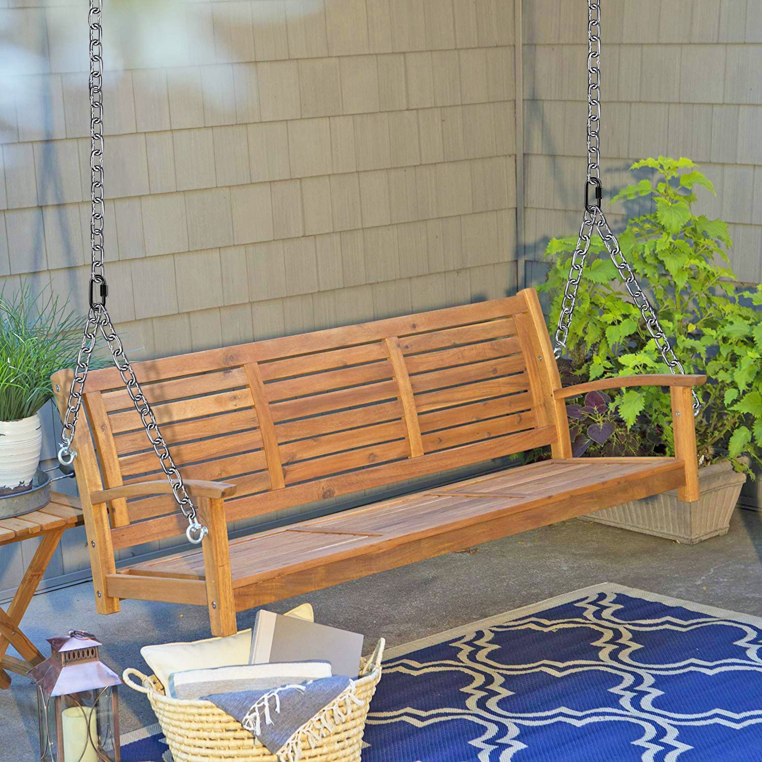 - Packing List:Two heavy duty silent swing hanger.Two 36.6" chain and two 54" chains.Two heavy duty carabiners.Four screws for use on wooden.