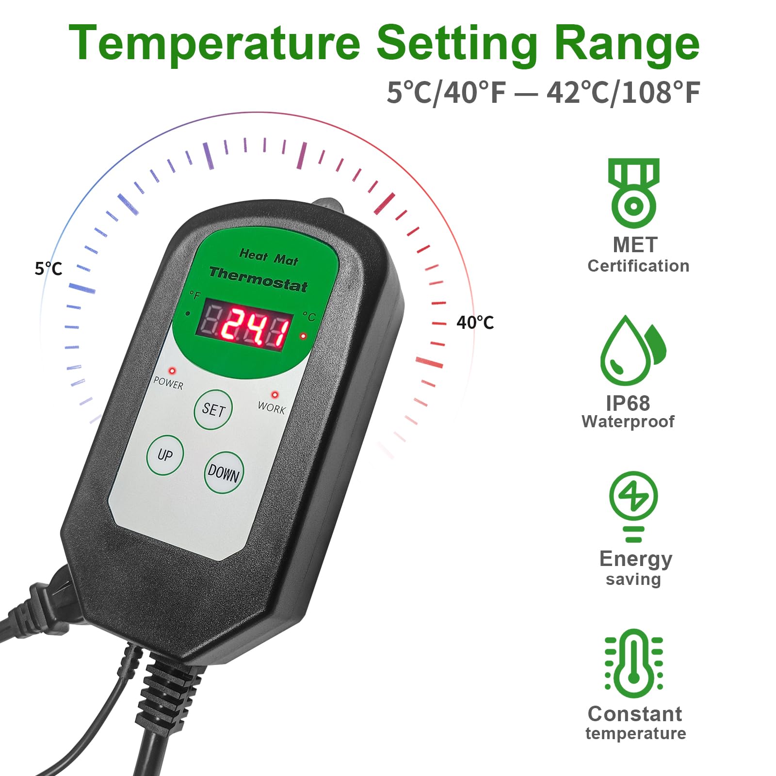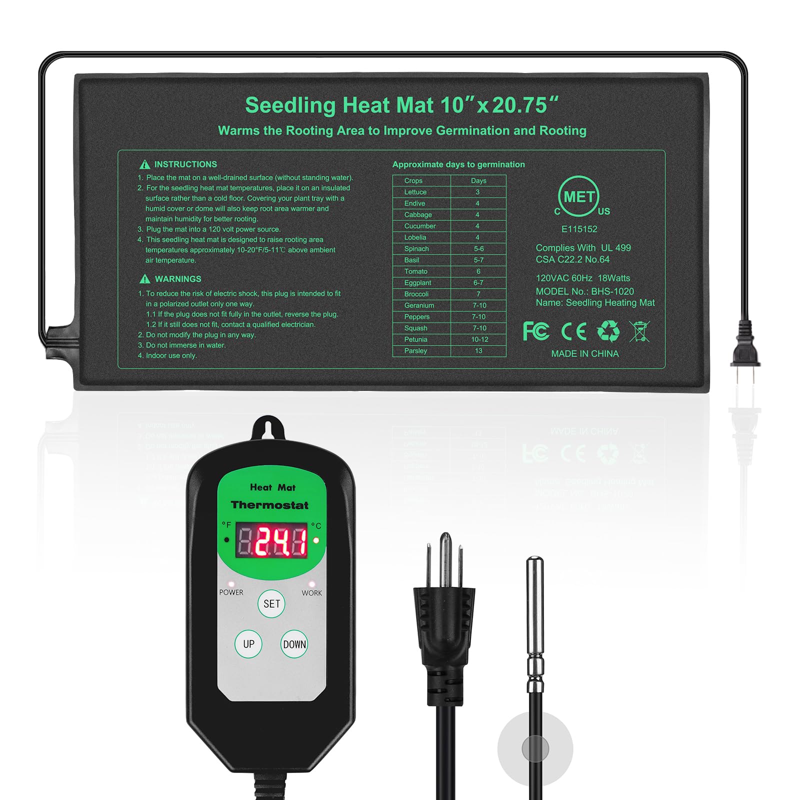 - 【HEATING SYSTEM】This heating pad for seed starting is made of UL & MET double certified heating wire, which is insulated and can quickly and evenly heat up to the required temperature of the plants, which effectively promotes the success rate of plant propagation and seed germination, and the power of the heating pad is only 18 watts, which helps to save electricity in the home.
