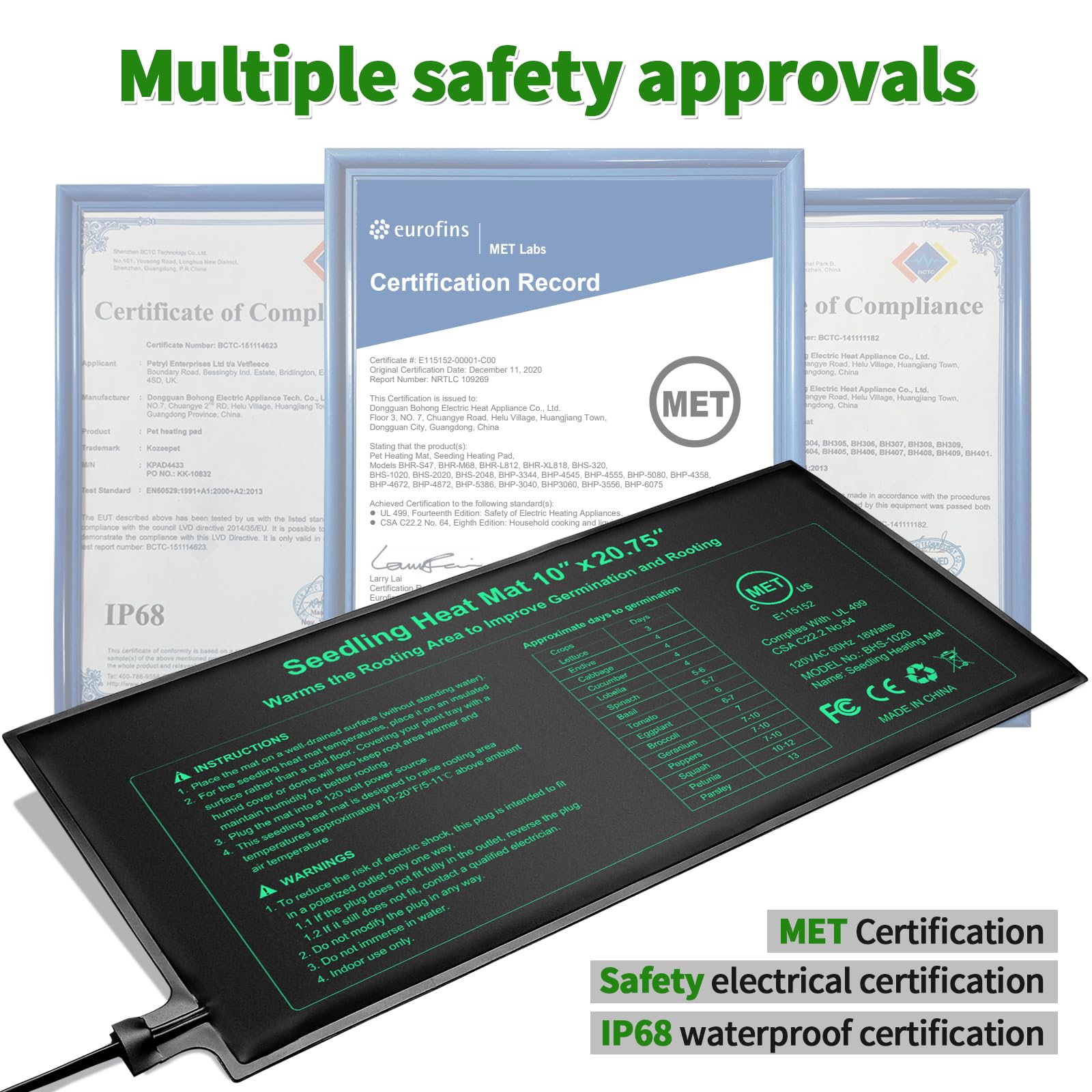 Bestio 10 in x 20.75 in Seedling Heat Mat, Waterproof Heat mats for Seed Starting, MET & UL Dual Certification Standard for Seeding, Greenhouse Growing