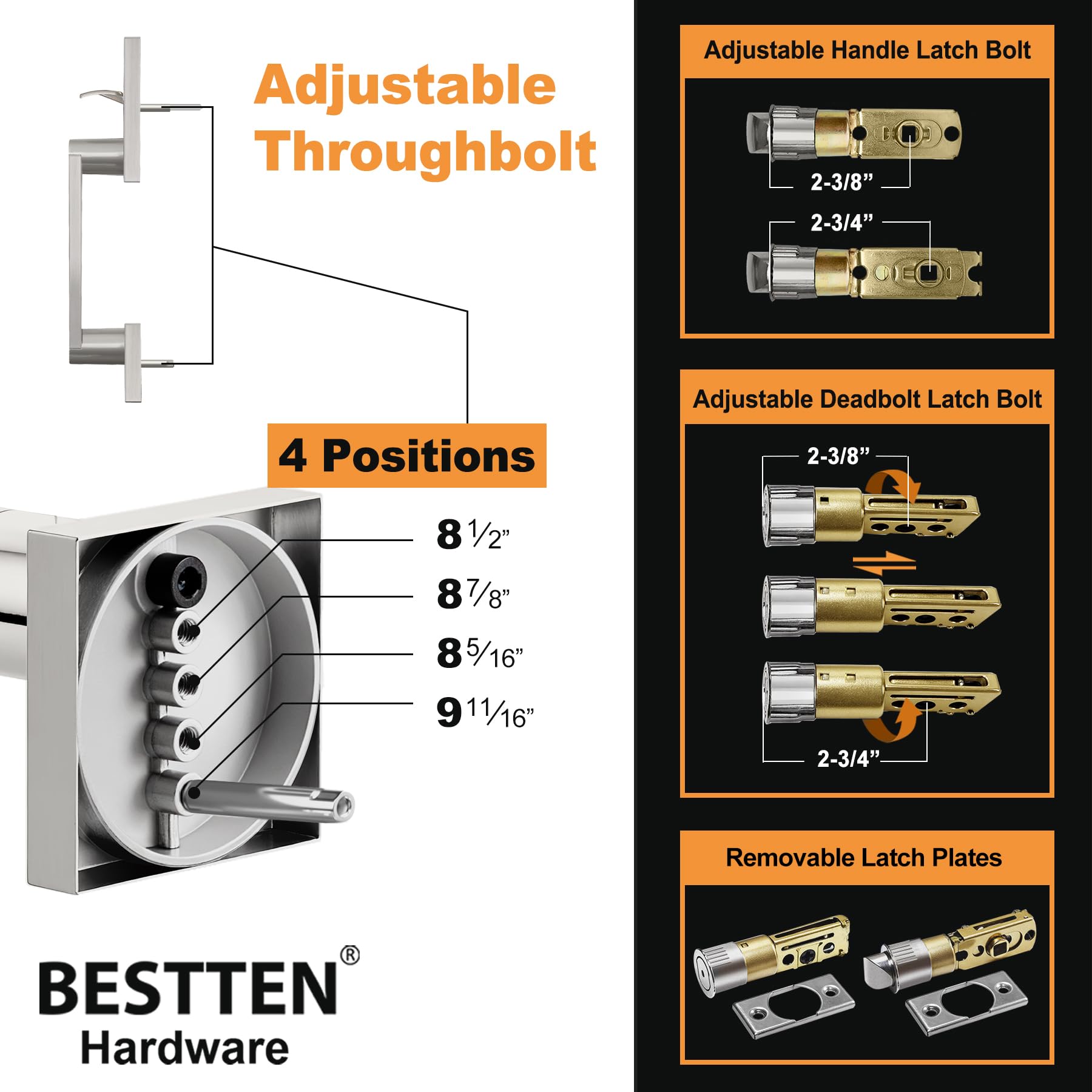 BESTTEN Square Front Door Entry Handle Set, Easy Install Adjustable Handle with Keyed Deadbolt Lock, All Metal Solid Construction in Stainless Nickel Finish
