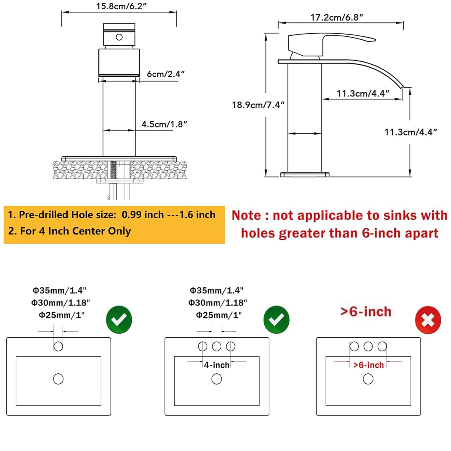 - WATERFALL FAUCET - Waterfall spout and Single handle for effortless flow and easily water adjust.