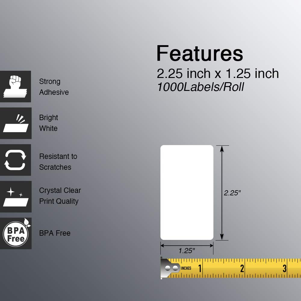 - [ Specifications]: 2.25 in x 1.25 in (57 mm x 32 mm) (1,000 Labels/Roll, 10 Rolls),Paper tube diameter:1"(25.4mm). No Ink Toner or Ribbons Needed! Save your money and effort.