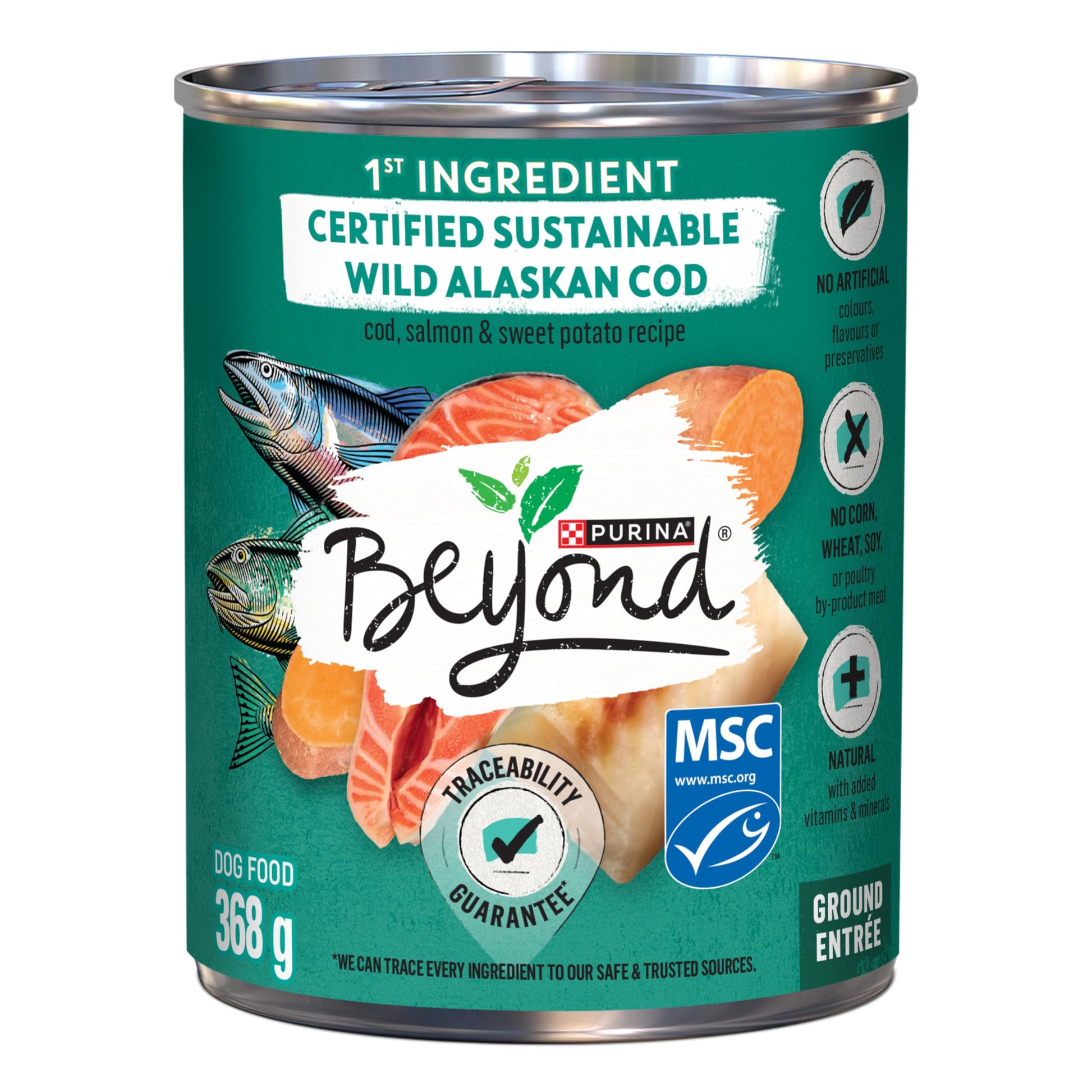 Beyond Natural Wet Dog Food, Alaskan Cod, Salmon & Sweet Potato Ground Entree - 368 g Can (12 Pack)