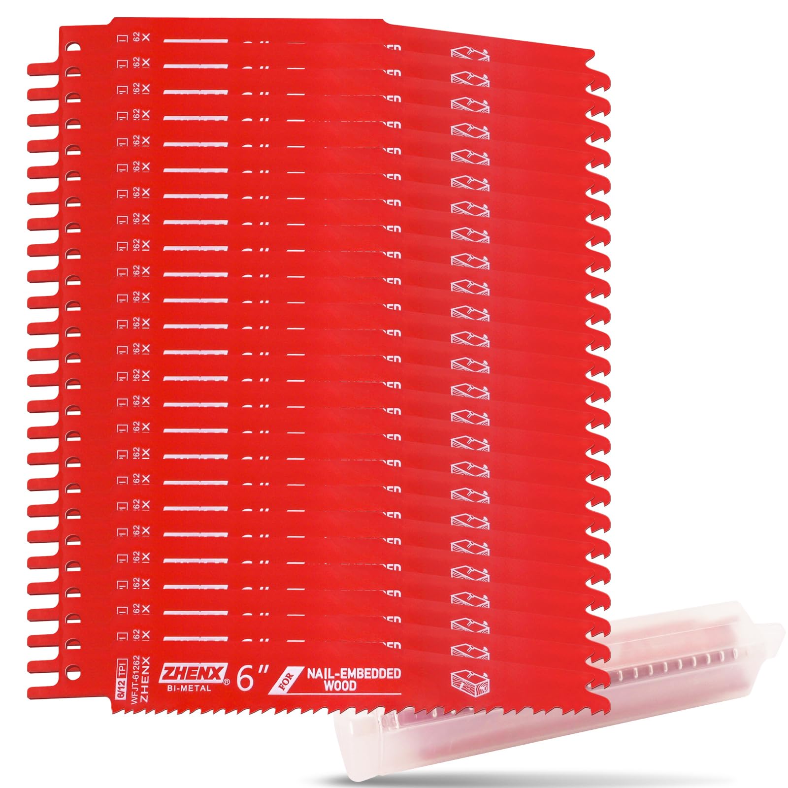 Bi-Metal Reciprocating Saw Blades for Nail-Embedded Wood,25 Pack 6/12tpi 6 Inch Saw Blade Wood with Nails Cutting, Organizer Case Included