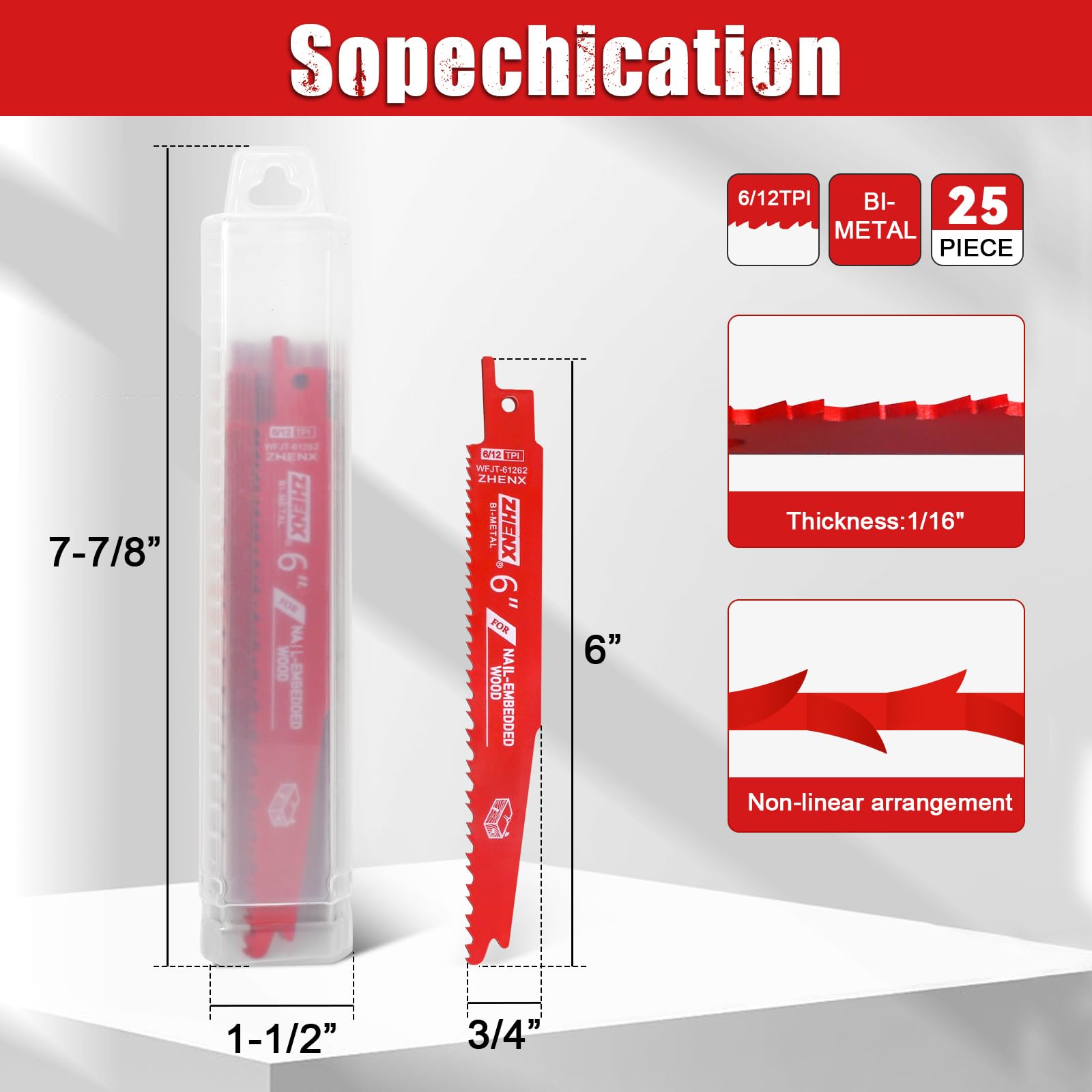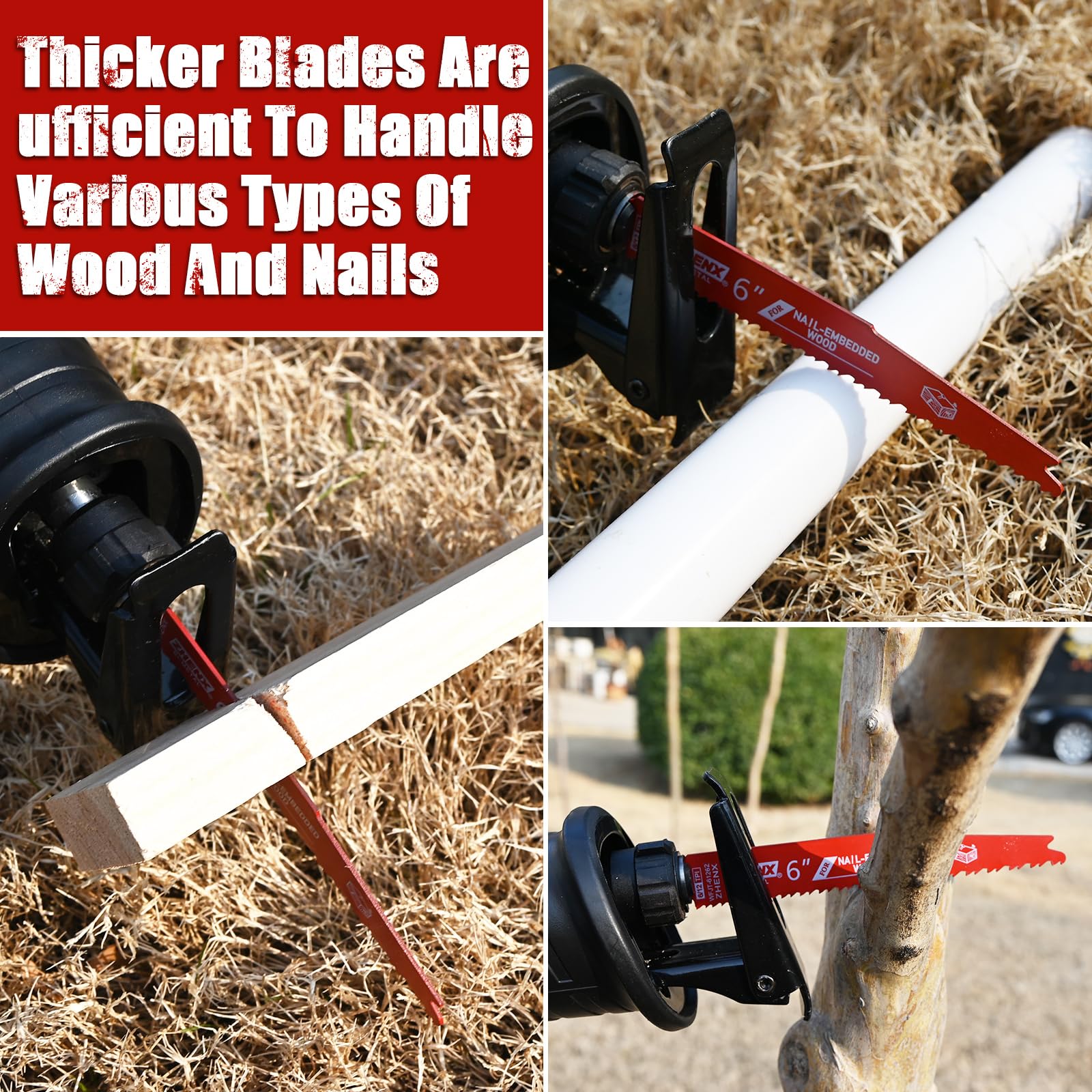 - Born For Professionals:The saw blade packaging has a large quantity and is suitable for people who have been engaged in wooden work for a long time. 6 inch reciprocating saw blades can cut common materials such as wood, PVC, nails, and bones, making it a good helper for your work