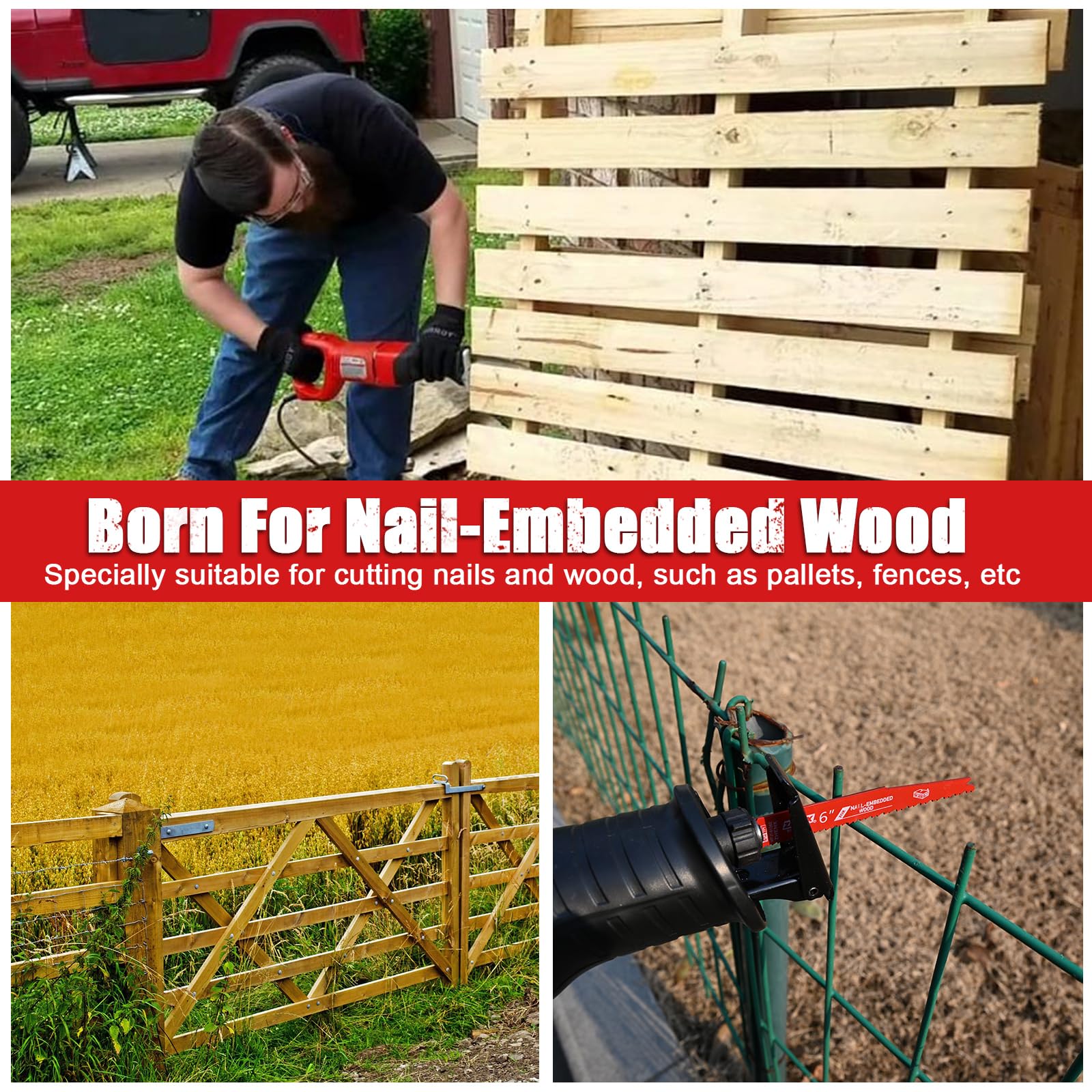 - Scientific Design:The saw blades for reciprocating saw adopts a scientific angle and tooth shape design, with alternating cutting of large and small teeth, giving you an advantage in dealing with wooden materials containing nails such as fences and pallets, no longer worrying about damaging the saw blade or frequent replacement