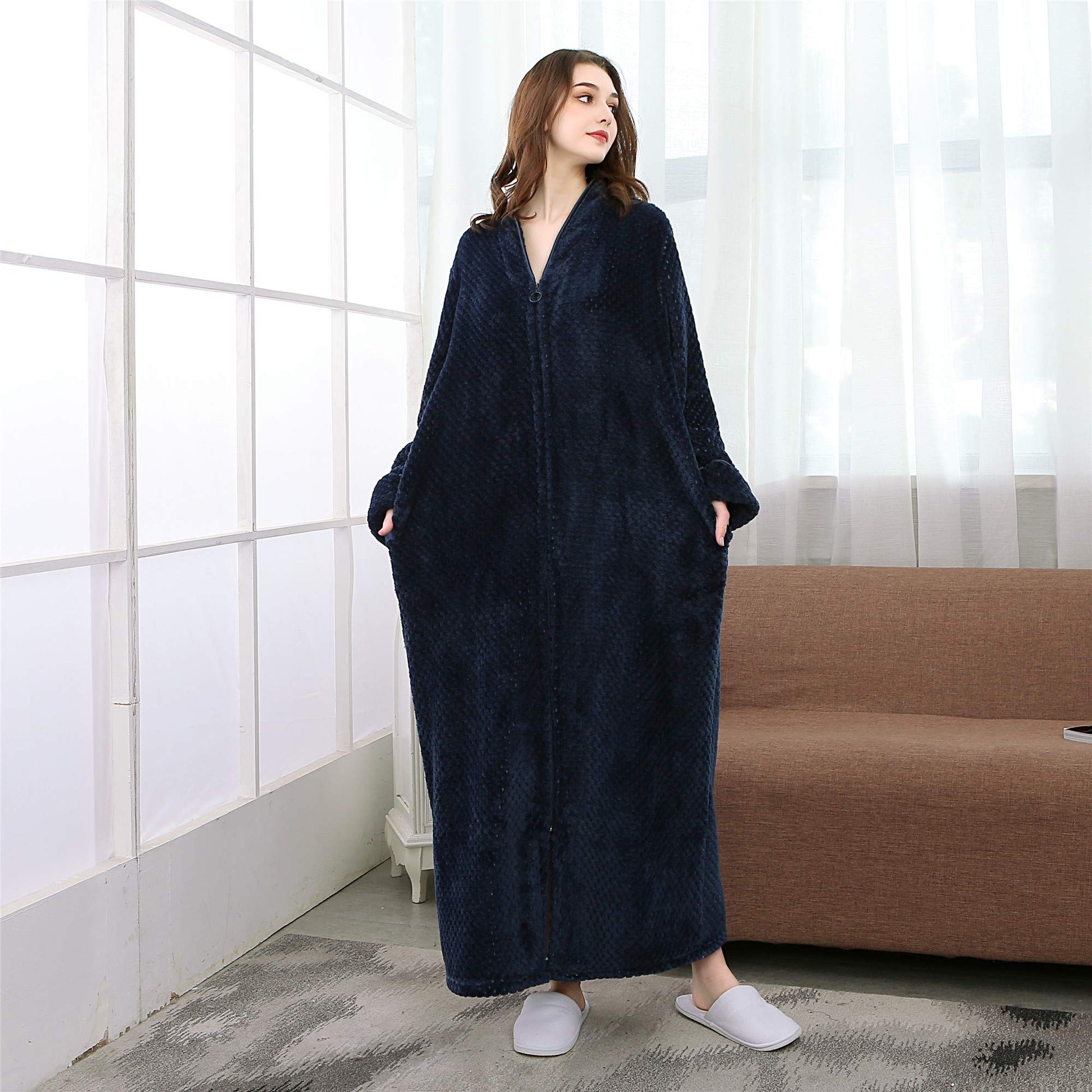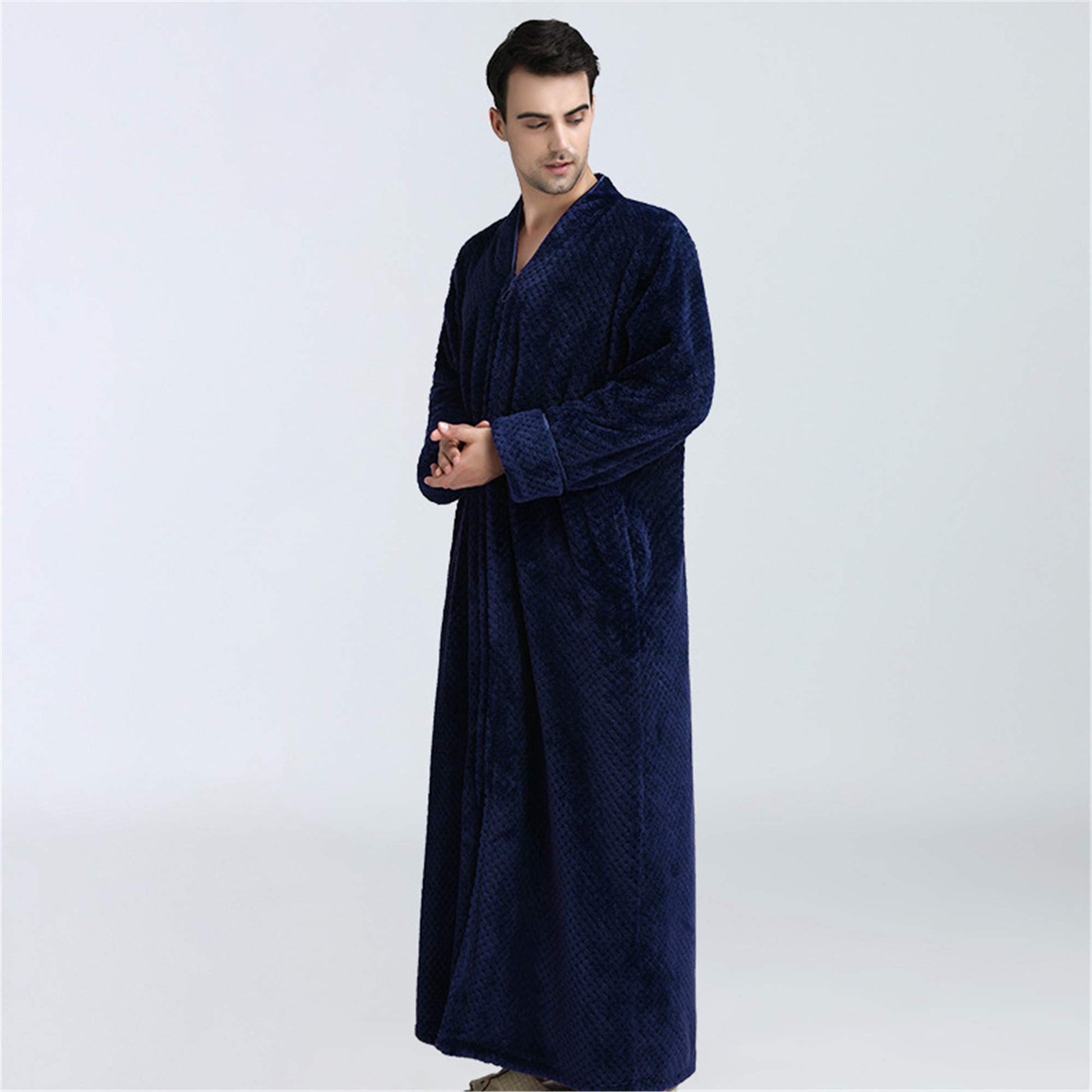 BIFINI Unisex Luxury Sherpa Bathrobe Full Length Zip Up Housecoat Sleepwear Navy XL