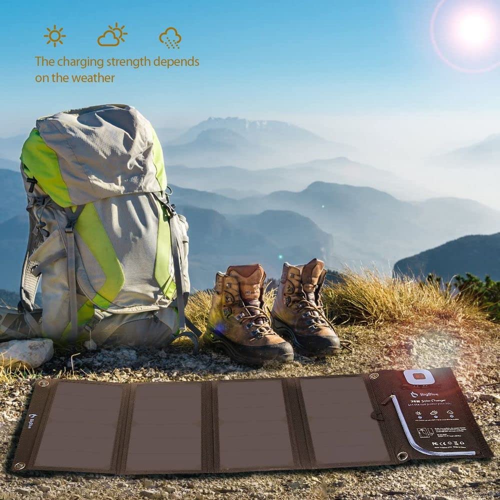BigBlue Portable Solar Charger 28W with Digital Ammeter,25.4% High-Efficiency, USB-A/USB-C Ports, Folding Waterproof Solar Panels with Carabiners for Camping, Backpacking, Phones, Tablets, Power Bank