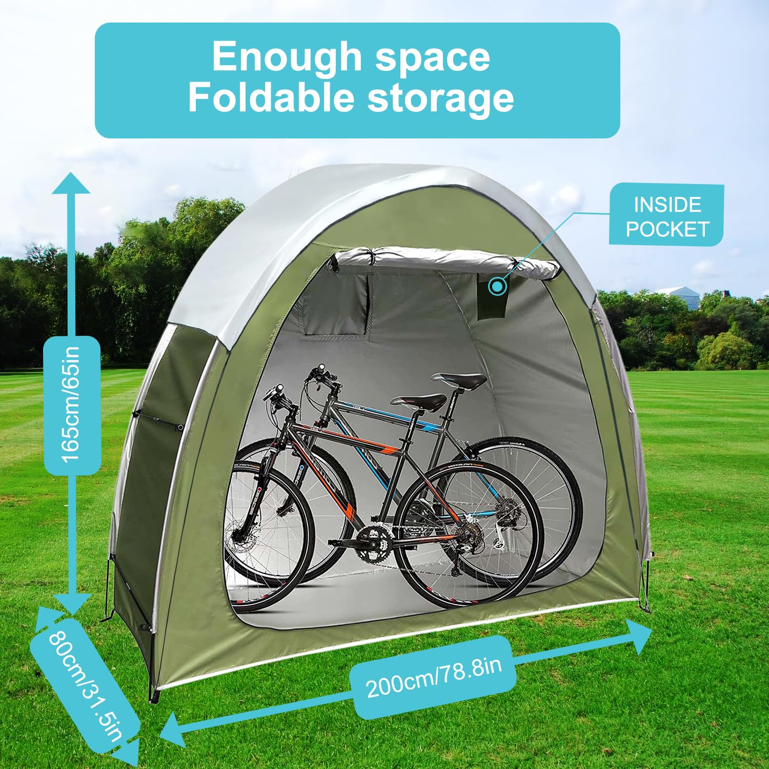 - Waterproof Storage Shed: this bike shed is made with 210D Oxford Fabric and silver coating (PU4000 Waterproof )under layer - Protect your stuff from water, sun uv and snow outdoor
