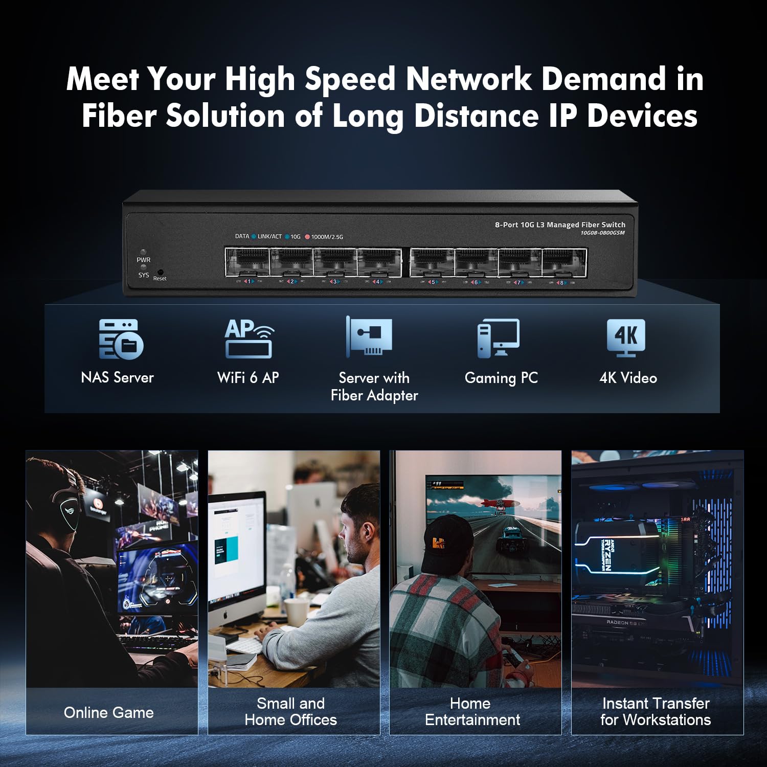 - 【10G SFP+】 8 x 10Gbps SFP+ ports, support 1G/2.5G/10G SFP module. It is recommended to use high-quality brands optical modules and fibers to achieve the best transmission rate