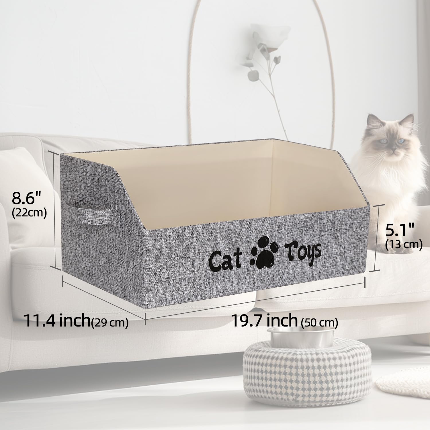 - Item Measurement and Capacity: Measures 19.7" (Length) x 11.4" (Width) x 8.6"/5.1" (Upper Height/Lower Height), providing ample space to store cat toys and supplies; supports up to 23 lbs (10.4 kg).