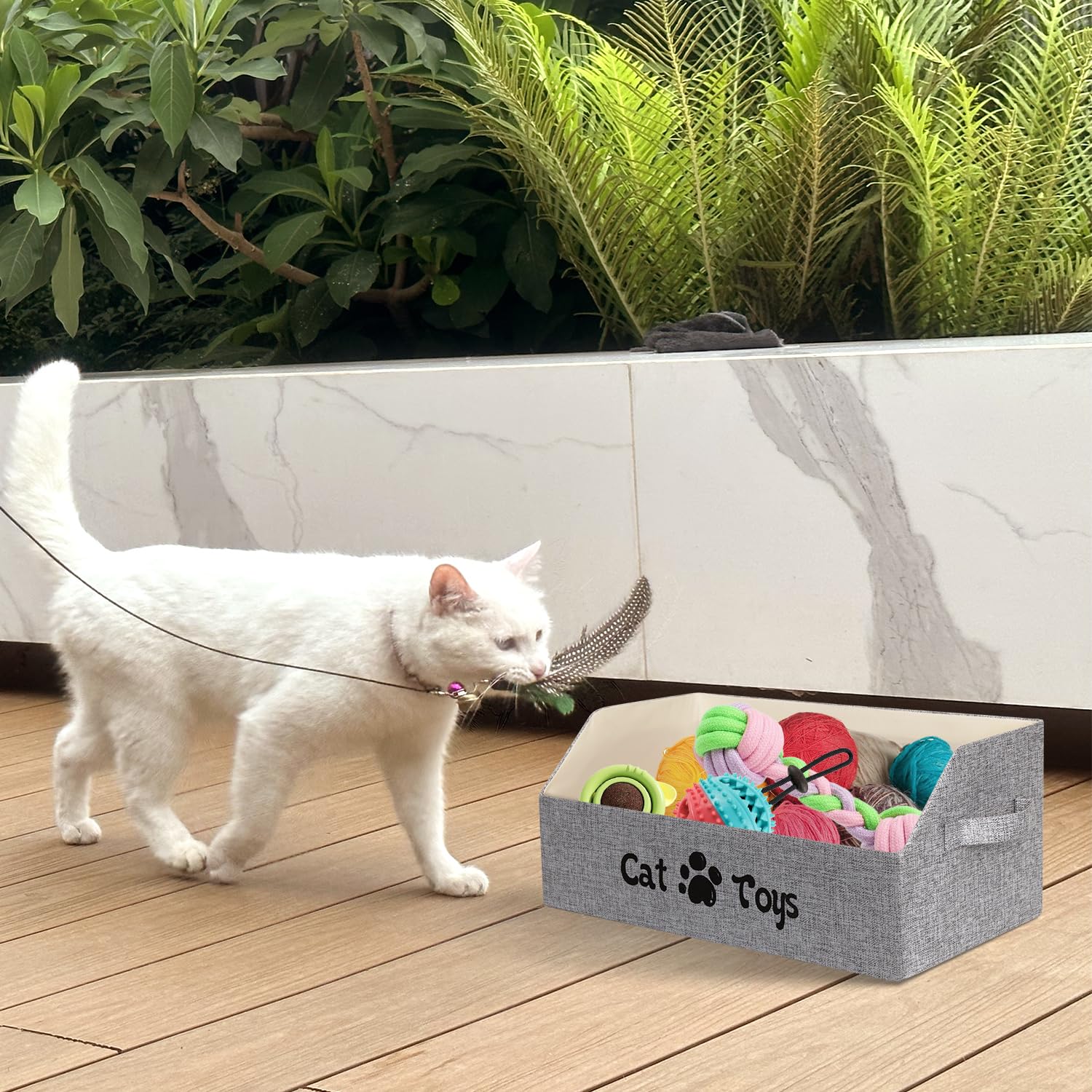 BinWhiz 19.7 in Cat Toy Bin, Cat Toy Storage Box Kitten Toy Basket Collapsible Pet Supplies Storage Chest Holder Organizer with Handles for Organizing Dogs Cats Toys Clothes Accessories, Gray