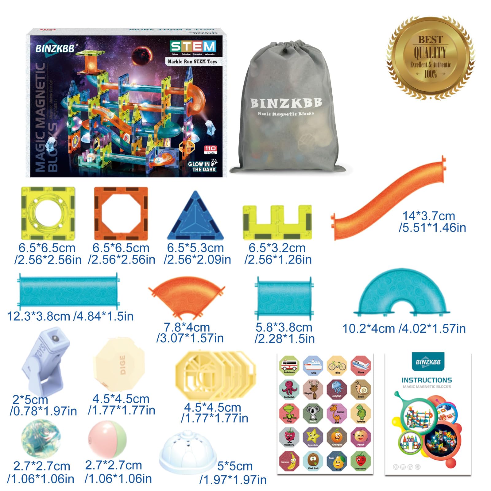 BINZKBB Light Magnetic Tiles Building Blocks for Kids,3D Clear Educational Toys,Marble Run STEM Magnets Construction Toys Set for Kids Ages 3 4 5 6 7 8 10+Year Old Boys Girls Creative Gift(110PCS)