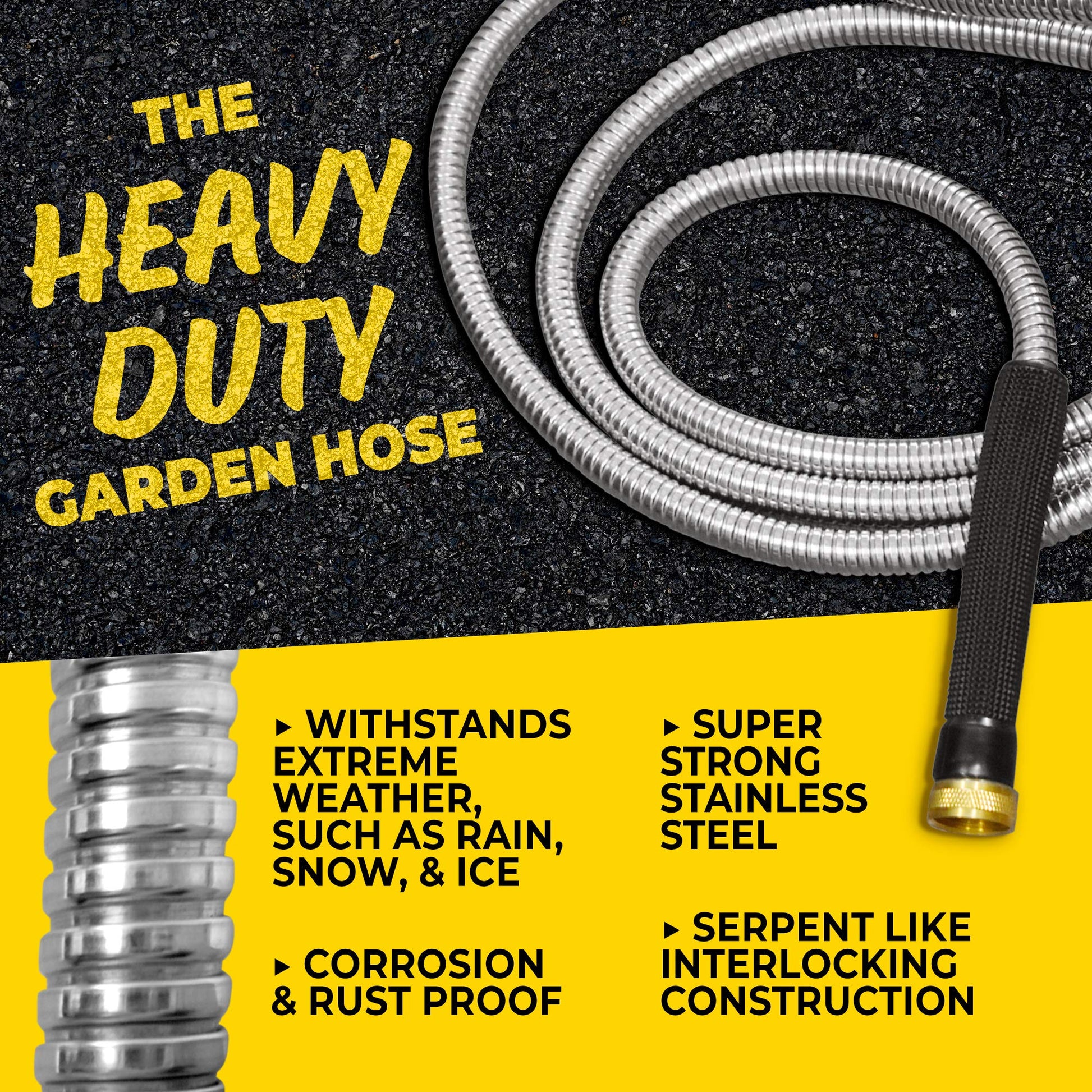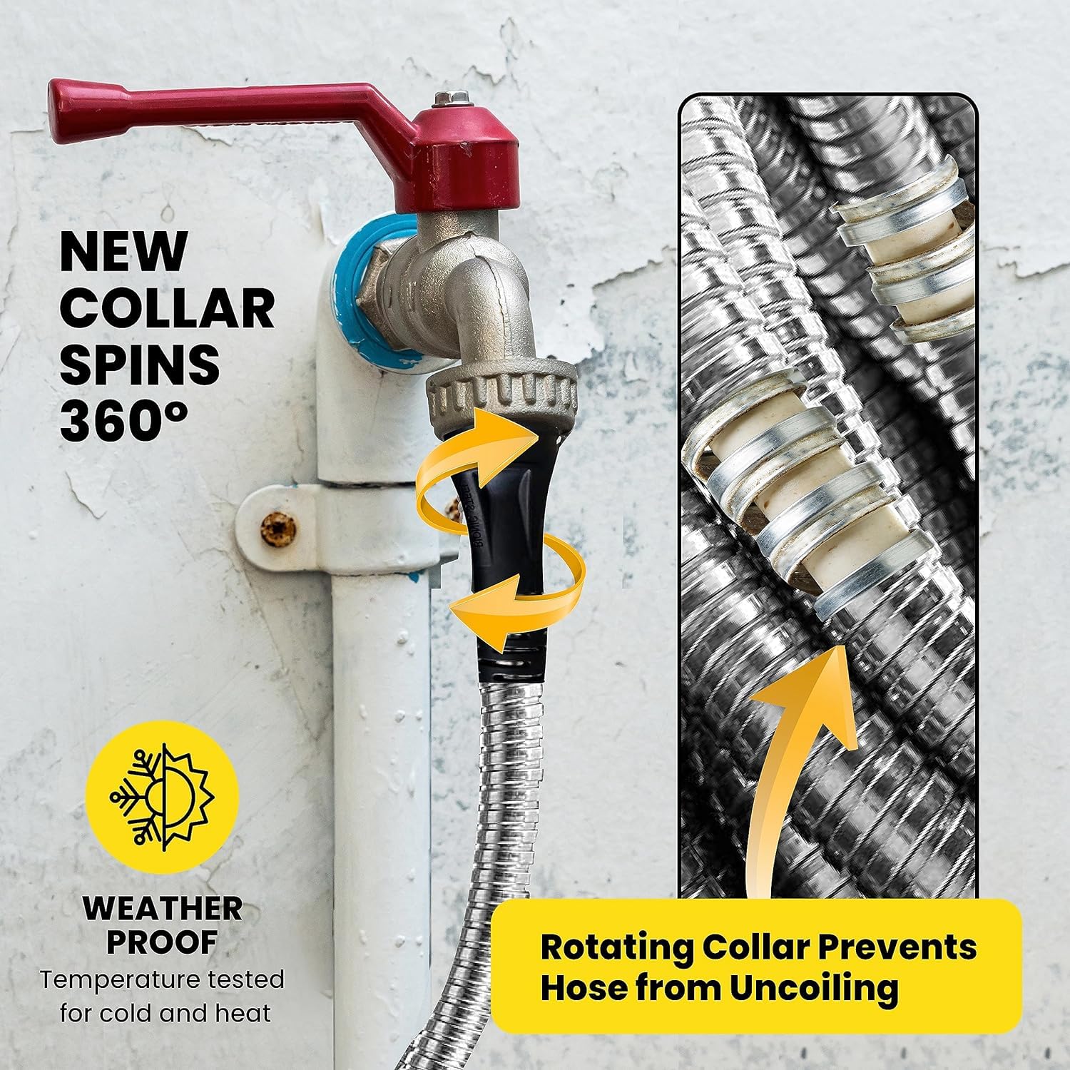 - Kink Free: The body of the hose is encased in a sturdy stainless-steel outer layer allows for a consistent, steady and high-pressure water output yet is memoryless, meaning it will lay flat, resist kinks, can coil easily and store effortlessly