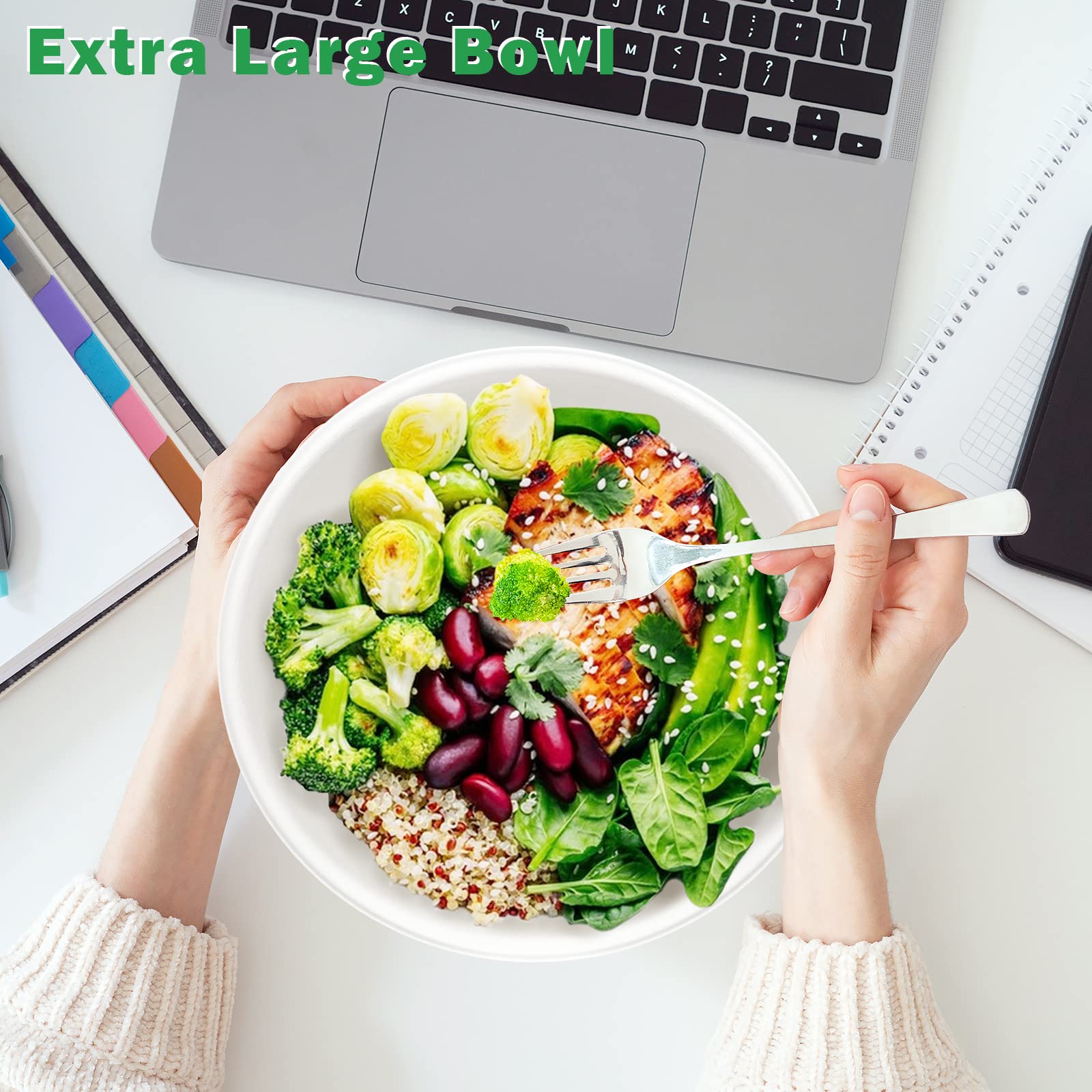 Bionutrio 40oz Large Paper Bowls Disposable, 100 Pack Heavy Duty, Compostable White Sugarcane Bowls For Cereal, Salads, Hot & Cold Food