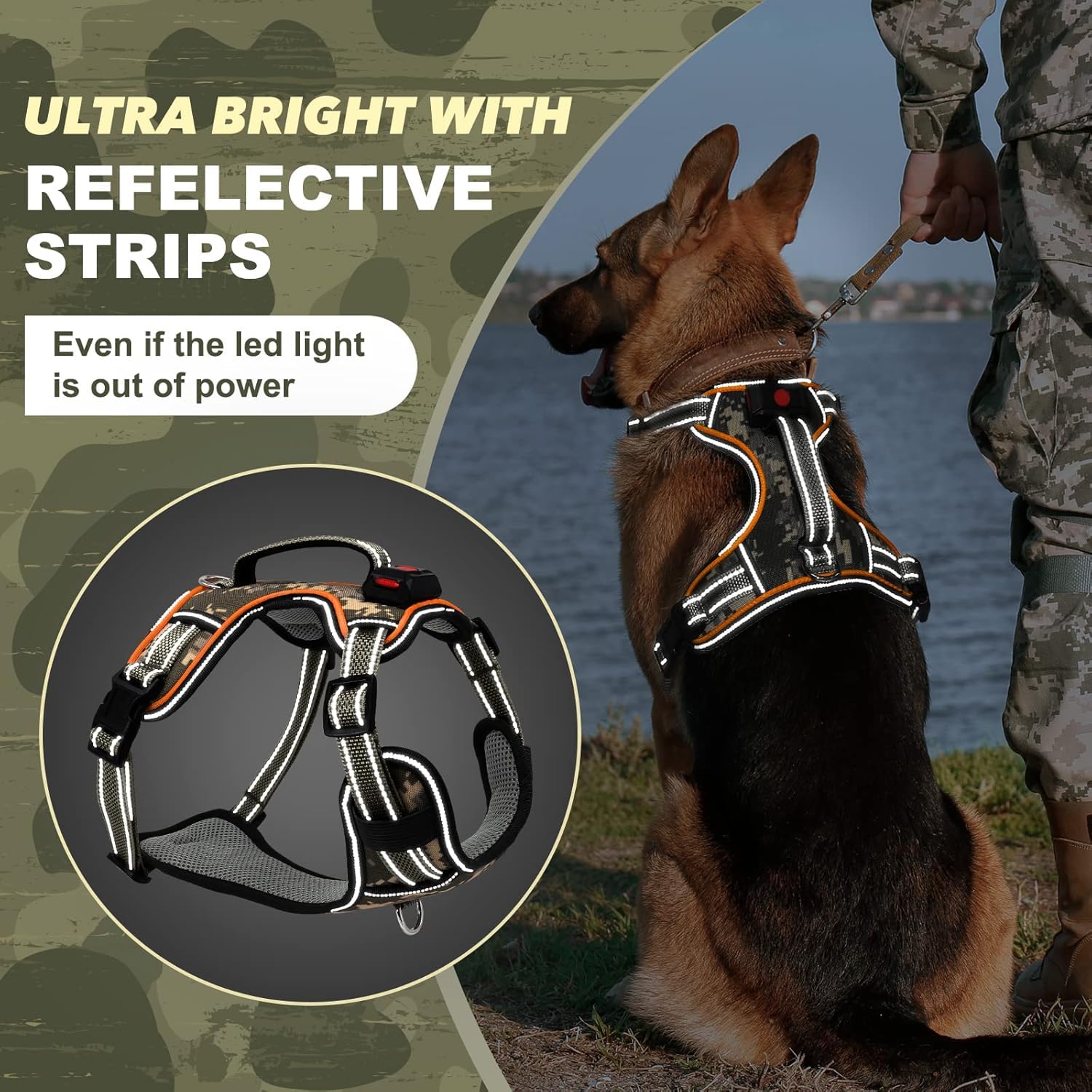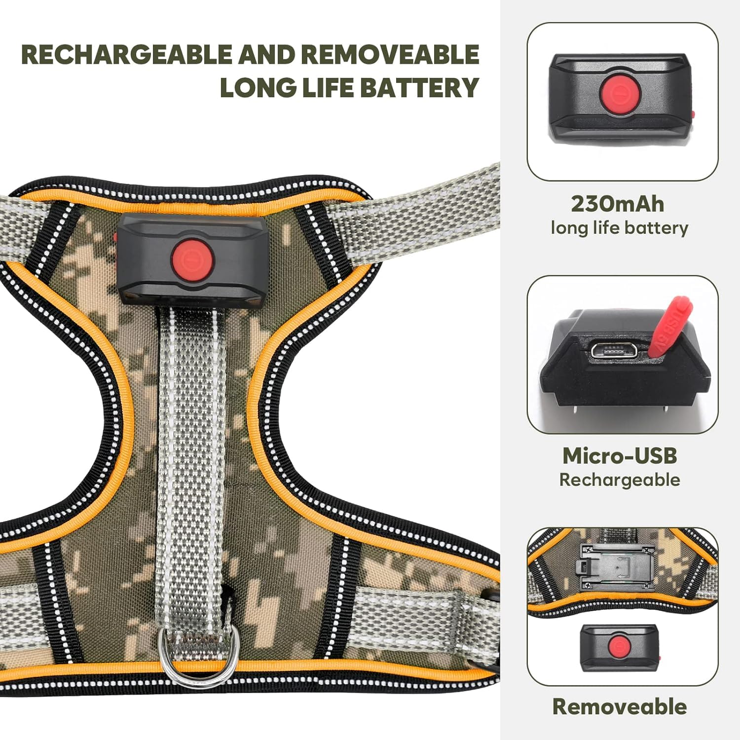 BiPawTi Light Up Dog Harness No Pull, LED Dog Harness Rechargeable/Reflective/4 Point Adjustable/High Visibility Lighted, Glowing Pet Vest Harness for Night Walking - Orange, XL