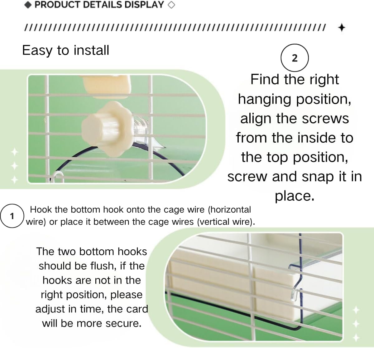 - 【Easy to Use】Super easy to install and works with most bird cages (perfect for cages with a line diameter of 2.2mm). The no-leakage design allows birds to bathe and play without messing the floor.