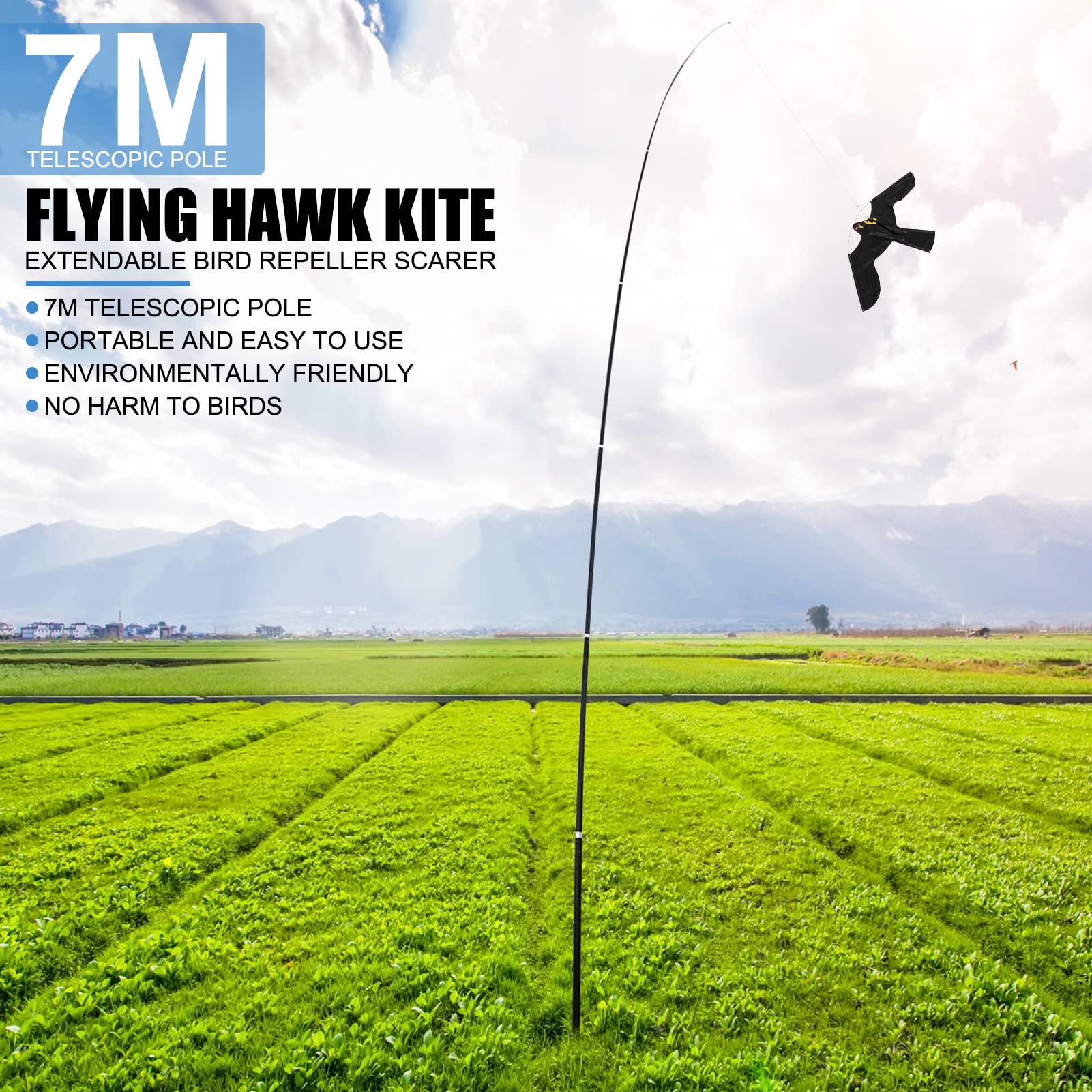 Bird Repeller, Extendable Bird Repellent Scarer Flying Eagle Kite Shape with Telescopic Pole for Home Outdoor Garden Farm (7M)
