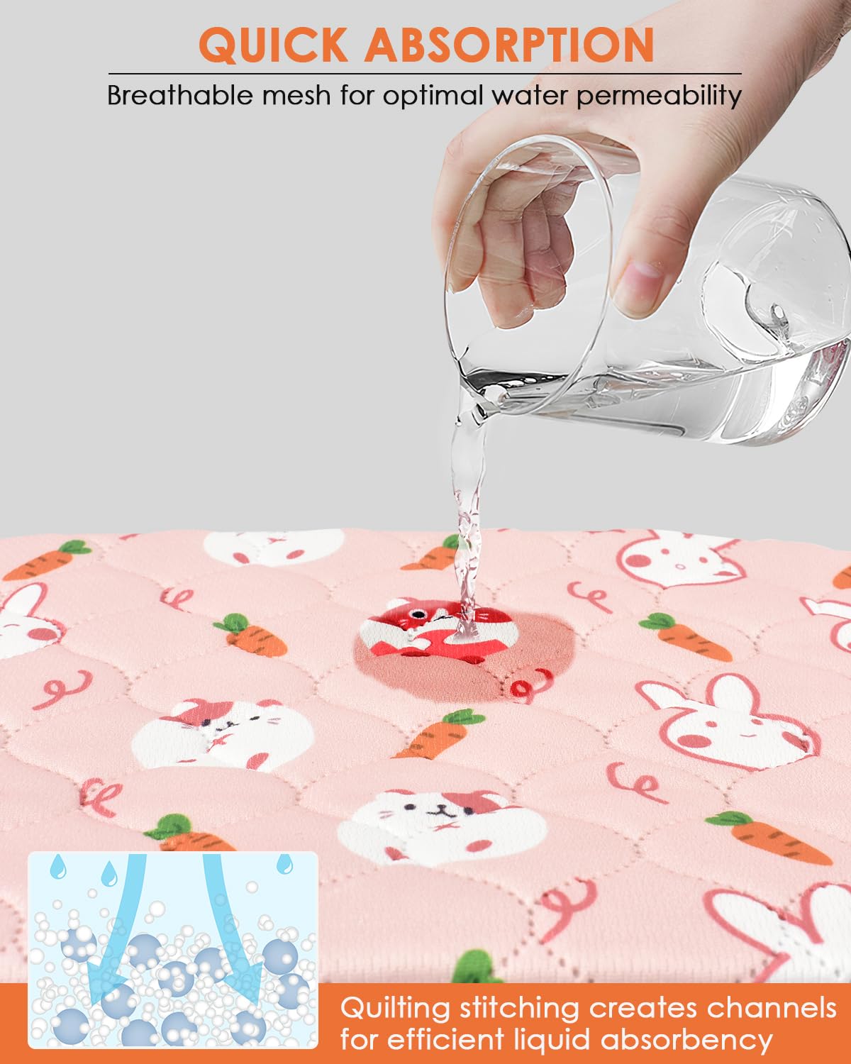 - Multi Purpose:This washable rabbit blanket is perfect for guinea pigs, rats, hamsters, chinchillas, duck, rabbits, puppies, cats, and more. Placing this absorbent urinal pad directly on the floor, sofa, car seat, bed or cage helps keep pets' feet clean and dry