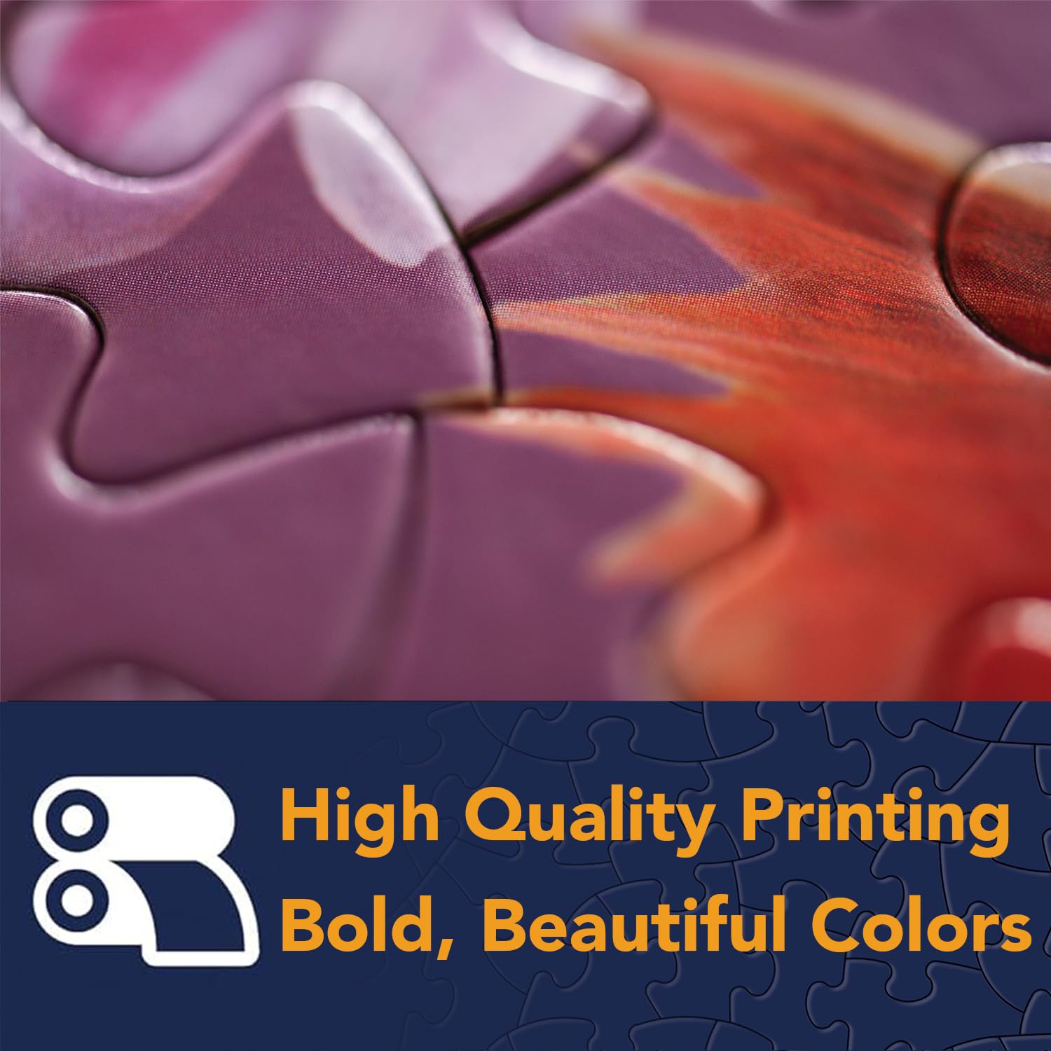 - Die-cut puzzle pieces are easy to handle - and no two are alike. Our 300, 500, 1000 Piece Puzzles are exciting and challenging to put together.