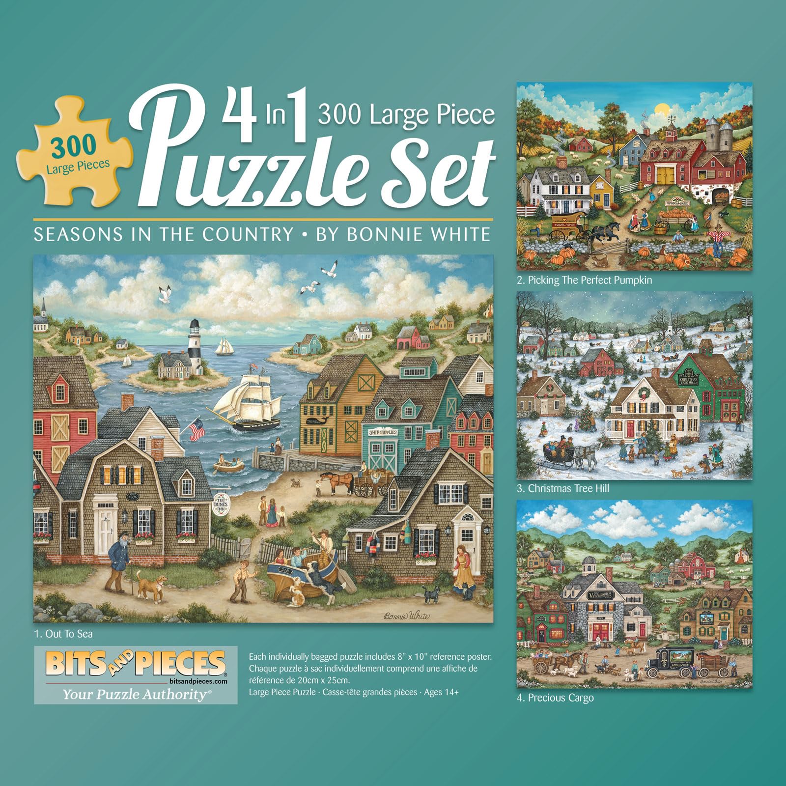 Bits and Pieces - Multipack of Four (4) 300 Piece Jigsaw Puzzles for Adults - Each Puzzle Measures 40.6 cm x 50.8 cm - 300 pc Seasons in The Country Jigsaws by Artist Bonnie White