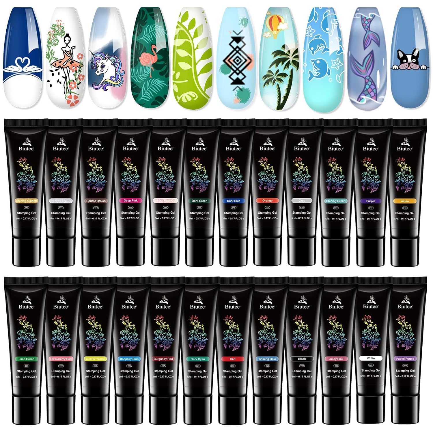 Biutee Nail Stamping Polish Gel Pack of 24 Colors 5ML UV LED Special Polish Gel Printed Nail Polish Gel Polish for nail stamping plate