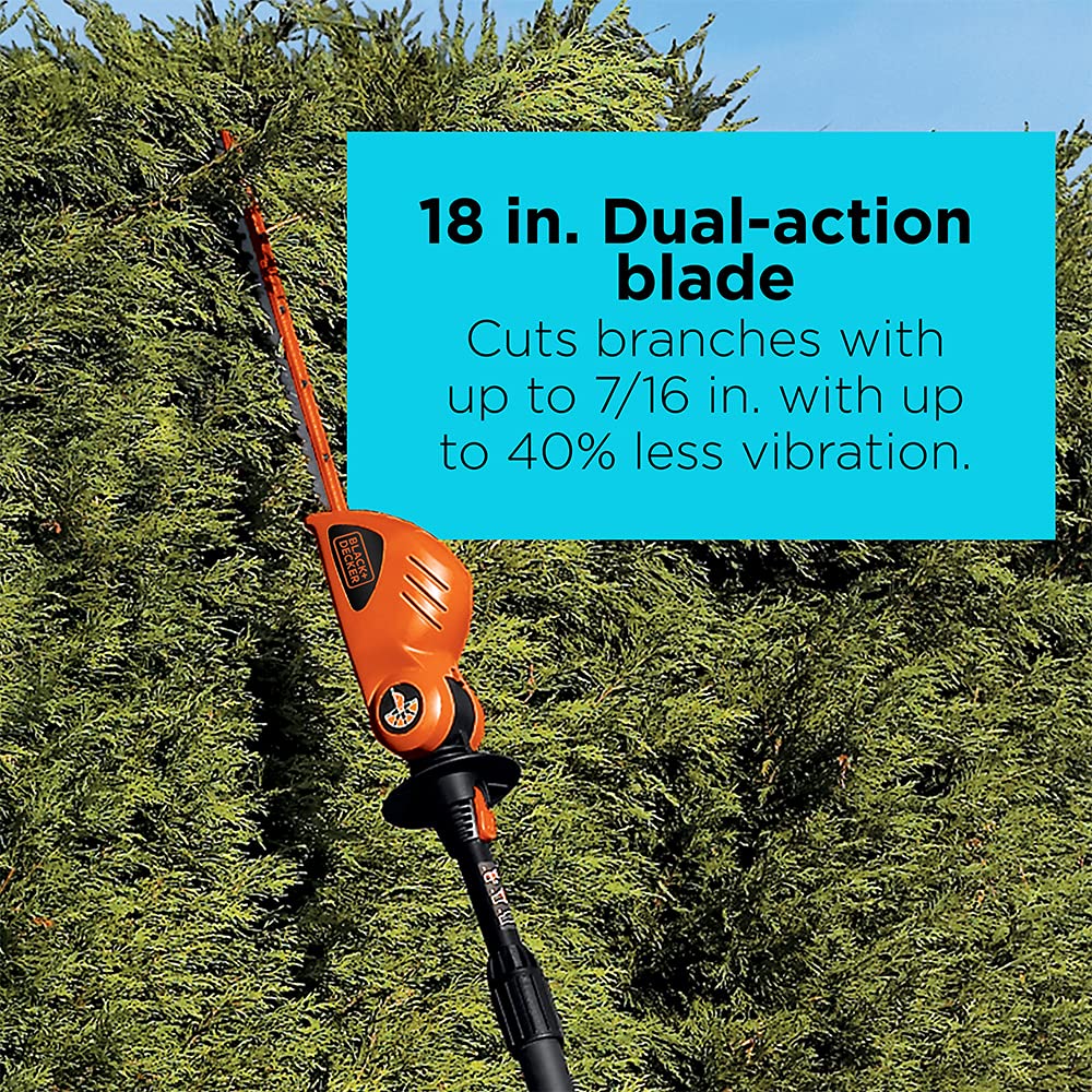 BLACK+DECKER 20V MAX* Cordless Pole Hedge Trimmer 18in, Dual Action Blades, Cut up to 11 ft High (LPHT120-CA)