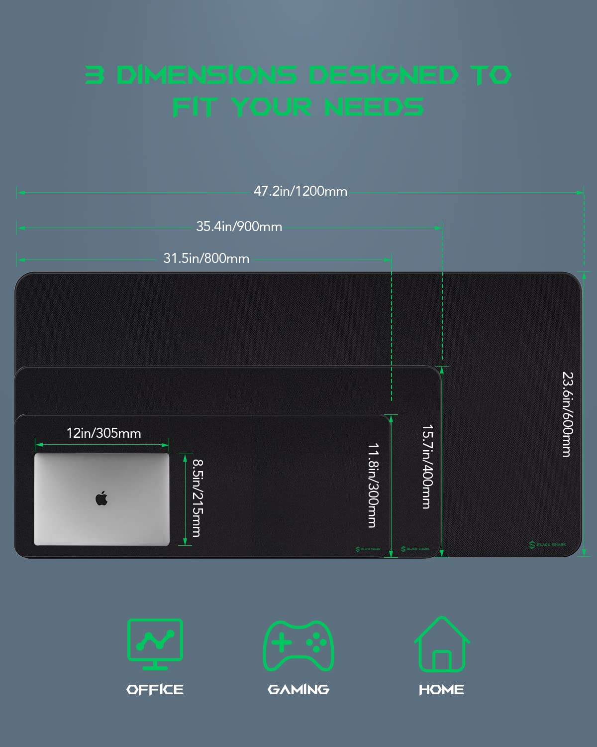 Black Shark Gaming Mouse Pad XXL (47.2"x23.6"x0.12"), Oversized Desk Mat, Non-Slip Mousepad, Super-Thick with Smooth Waterproof Surface, Anti-Fray Stitched Edges for Full Desk Pad Manta P4