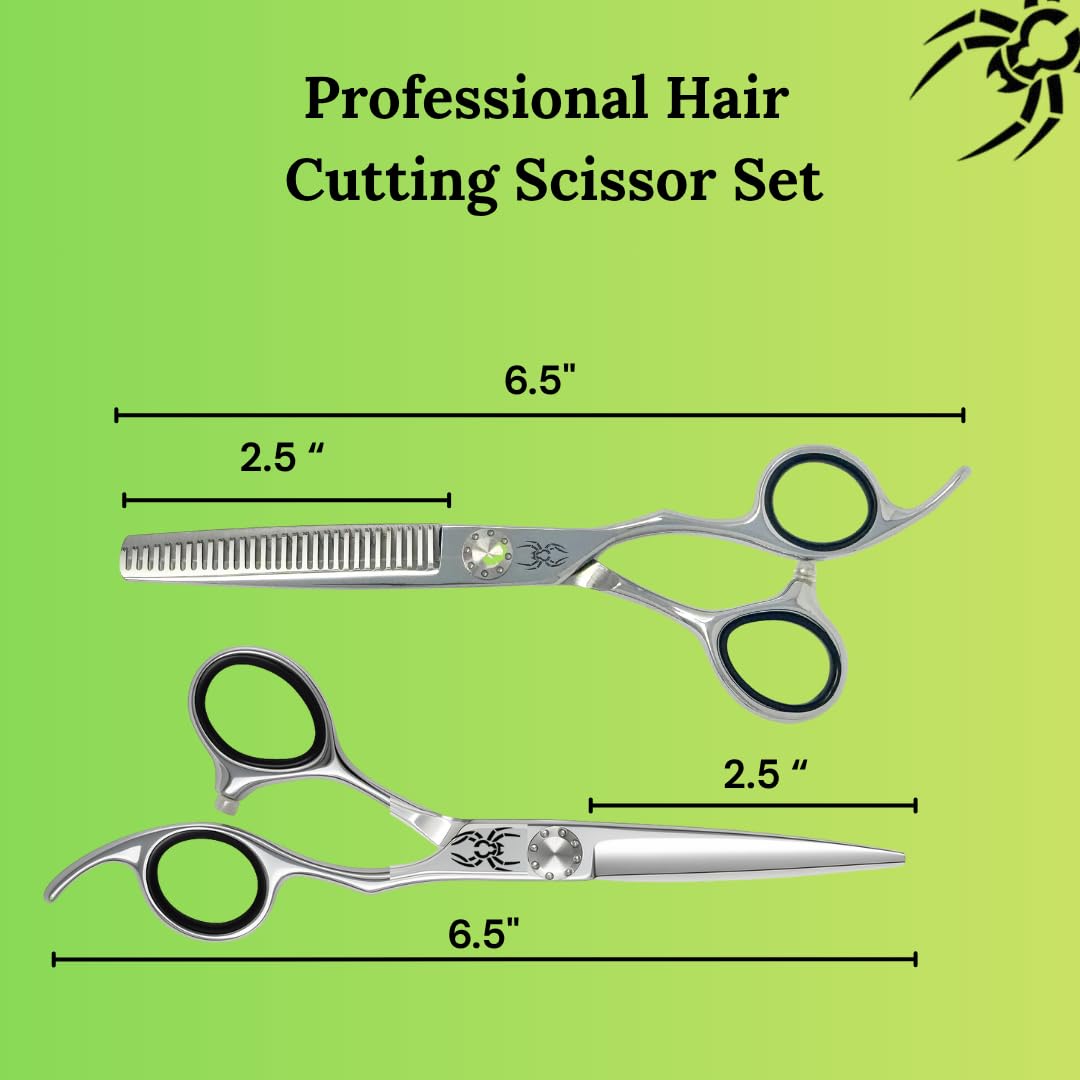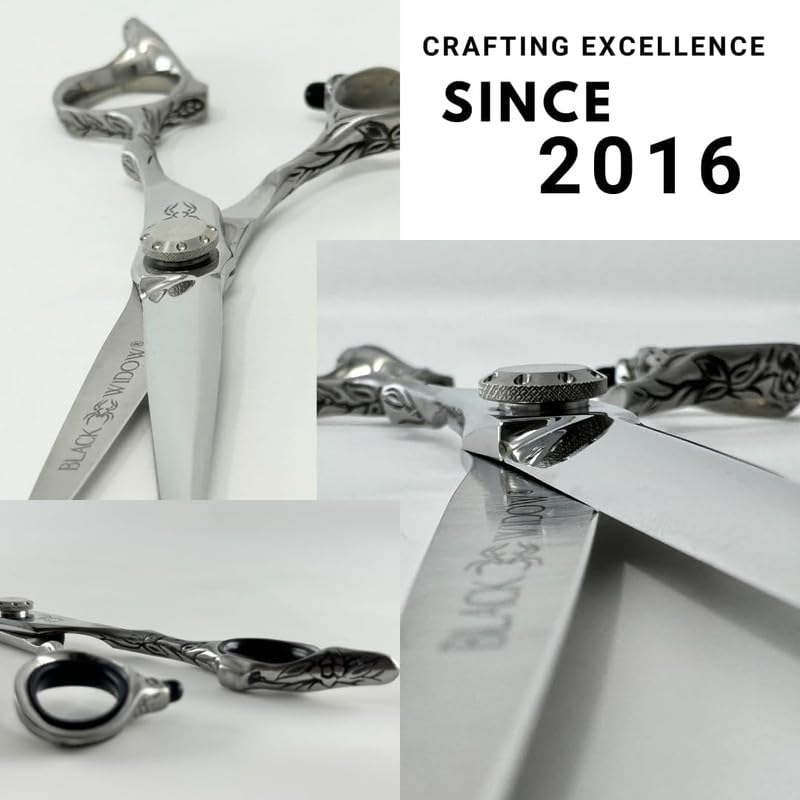 - FOR PROFESSIONAL BARBERS AND STYLISTS - This premium set of scissors for hair cutting and texturizing is custom-made for pros. The comfortable handles, black metal bumper for a softer close, sleek design and Black Widow logo under the screw help for that truly professional and executive look your customers can trust and other barbers envy