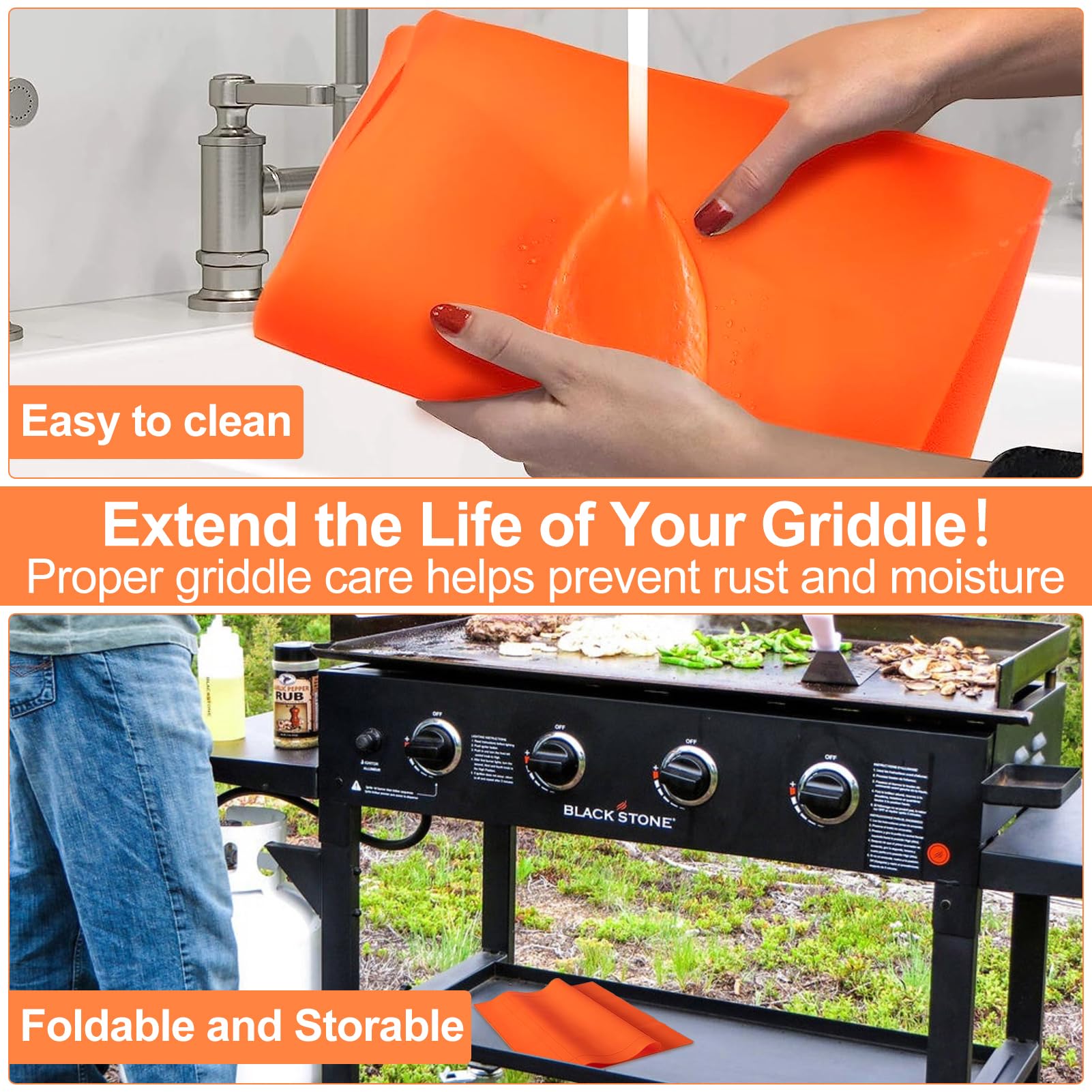 - ✅【Rust Deterrent & Surface Sealant】Our griddle cover can protecting your BBQ with a sleek finish. Protects against leaves, dust and other debris. Silicone griddle mat can effectively prevent rust for your griddle durable for a long time.