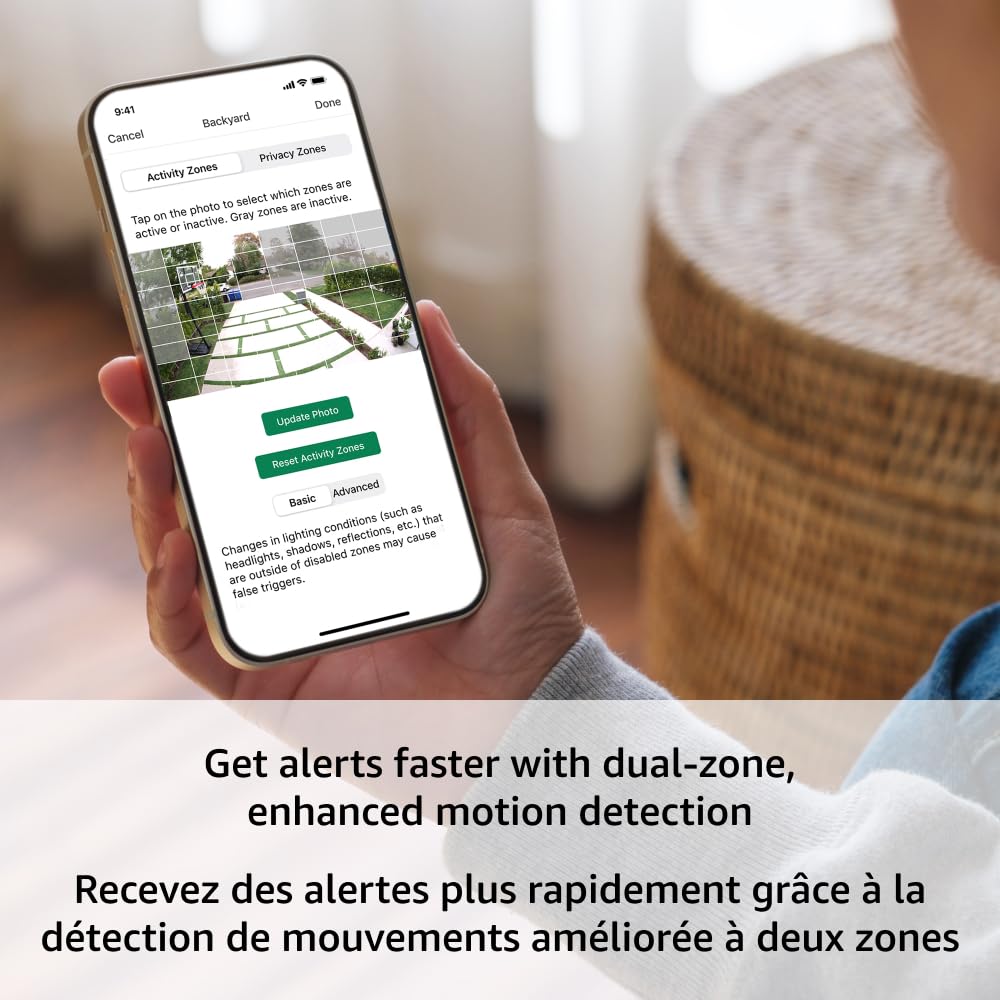 - Enhanced motion detection — Be alerted to motion faster from your smartphone with dual-zone, enhanced motion detection.