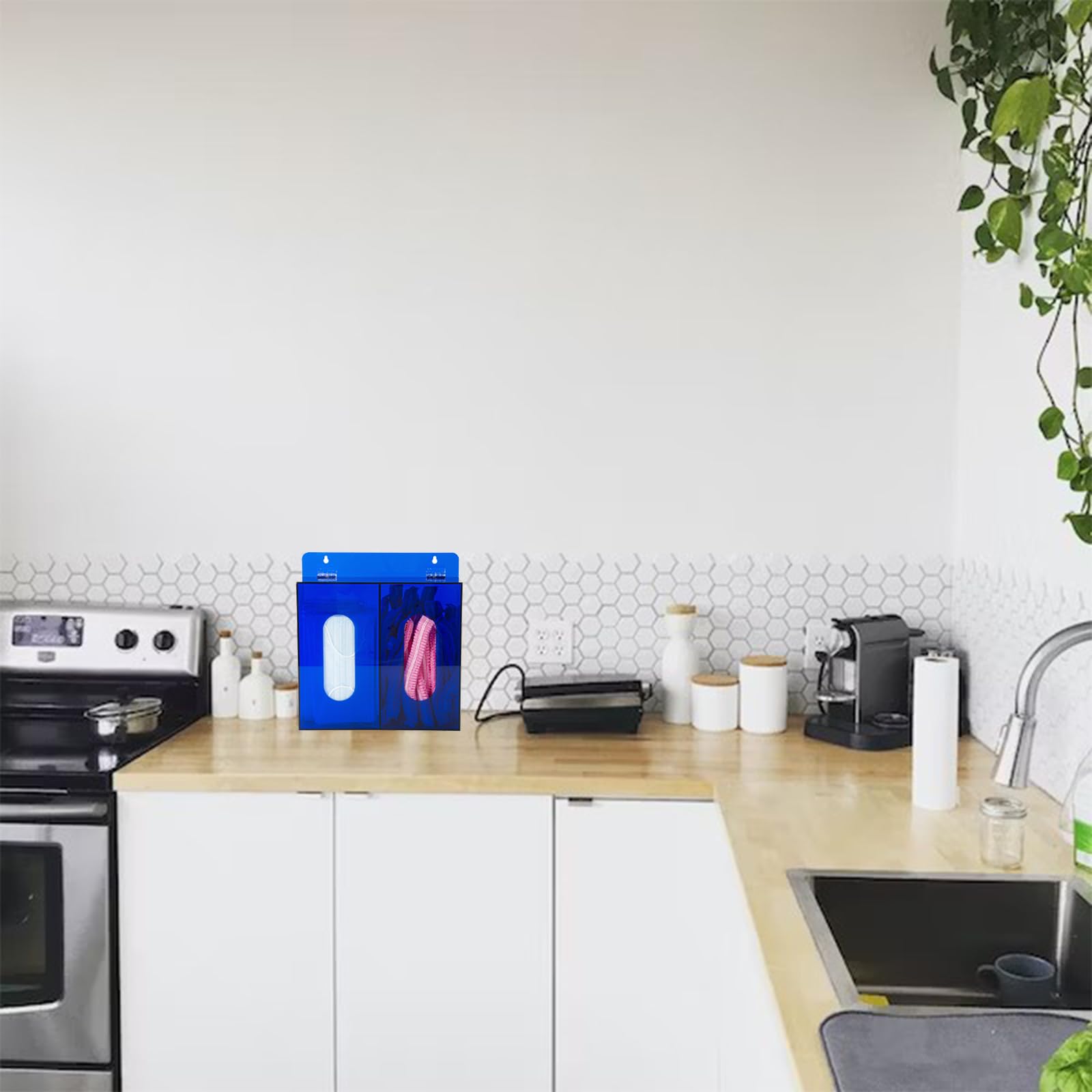 Blue Acrylic Glove Box Holder, Wall Mounted Glove Dispenser, Hairnet Shoe Cover Dispenser (for 2 Boxes)