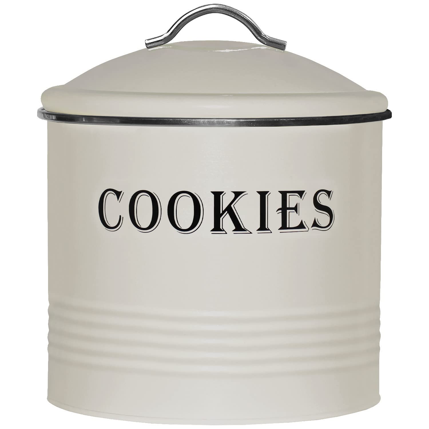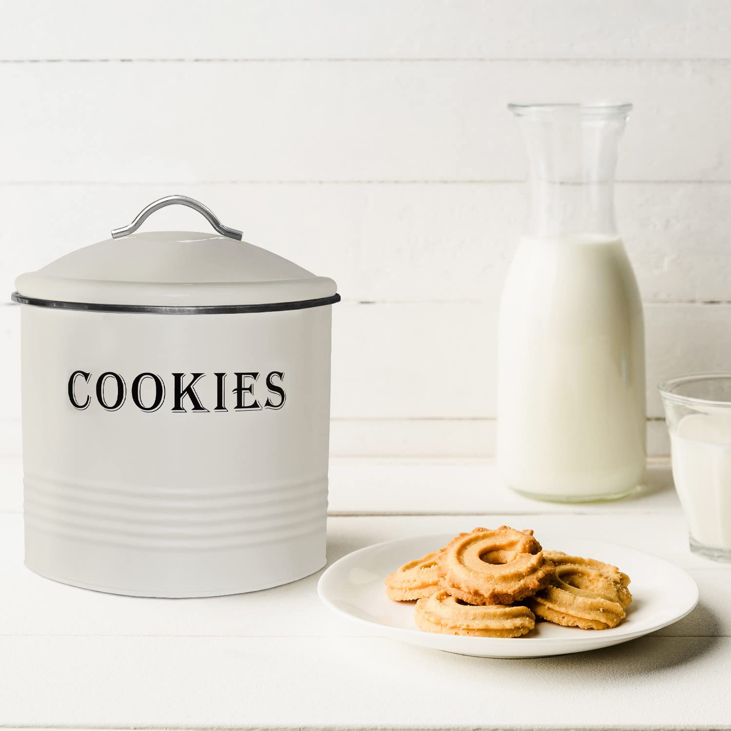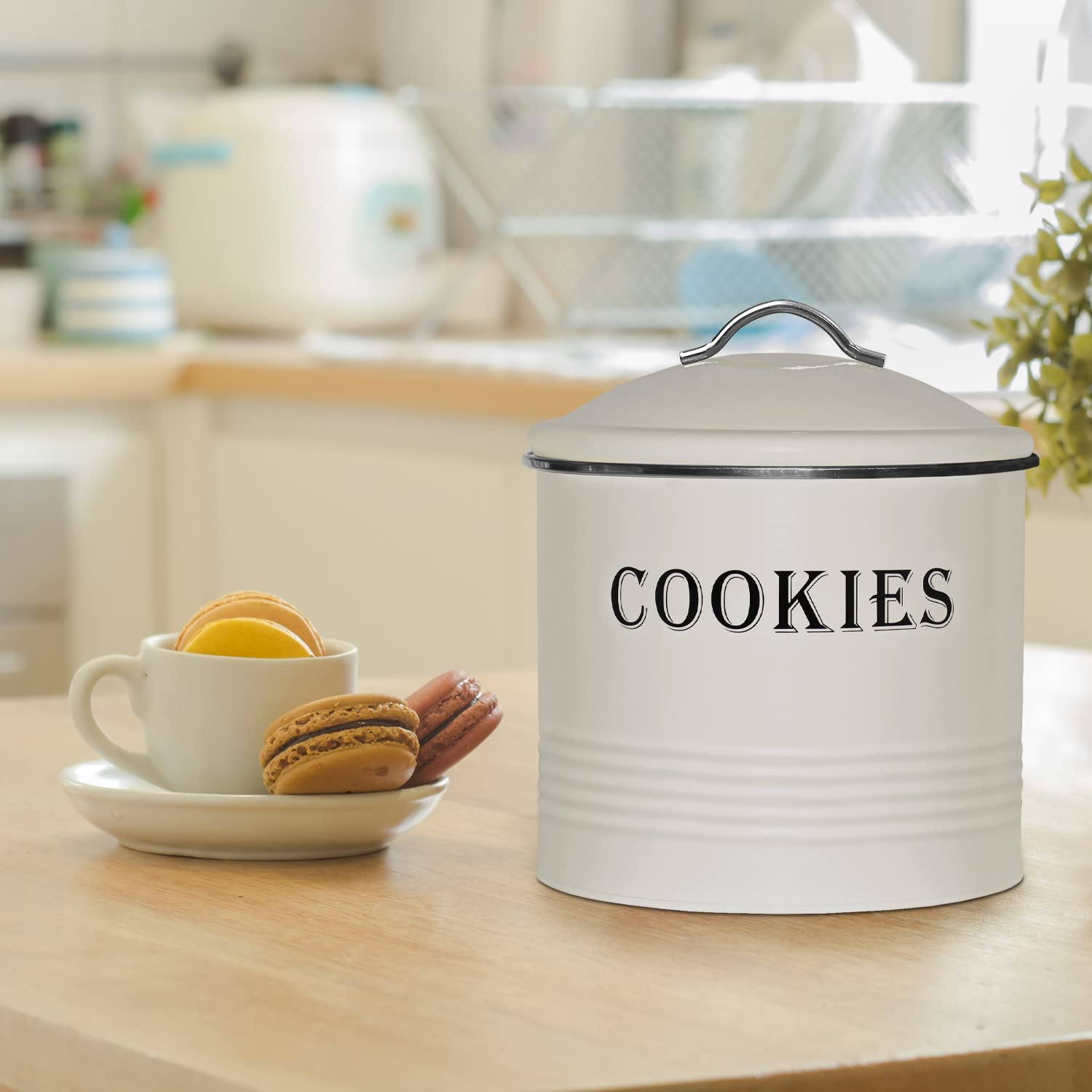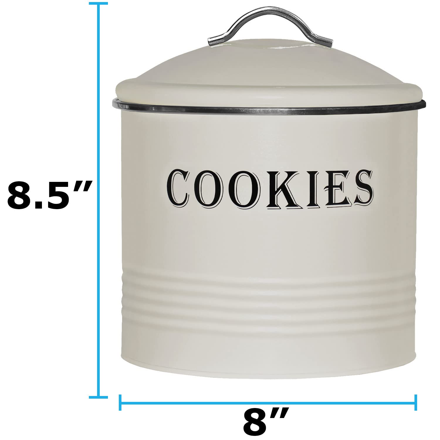 - Vintage Farmhouse Cookie Jar - Dimensions 7 inch x 8.5 inch (L x H), Color - Ivory, Unbreakable shatterproof, and chip-proof metal cookie tins