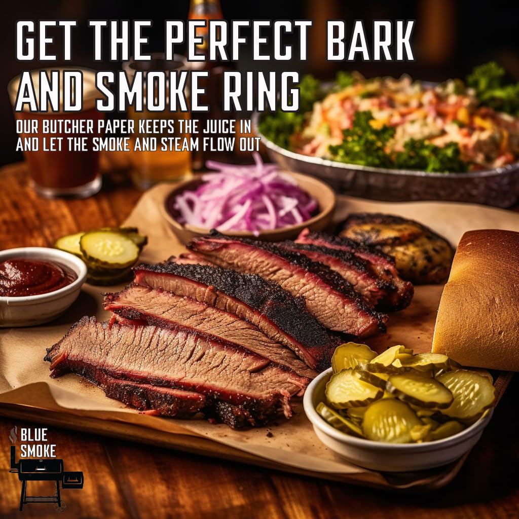- EXTRA DURABLE- Heavy duty, Ultra thick pink butchers paper (70 grams per square meter) Will keep the juice in, let the SMOKE and steam flow out, and WON’T TEAR during work. high temp Resistant- will not burn or crumble in your smoker.