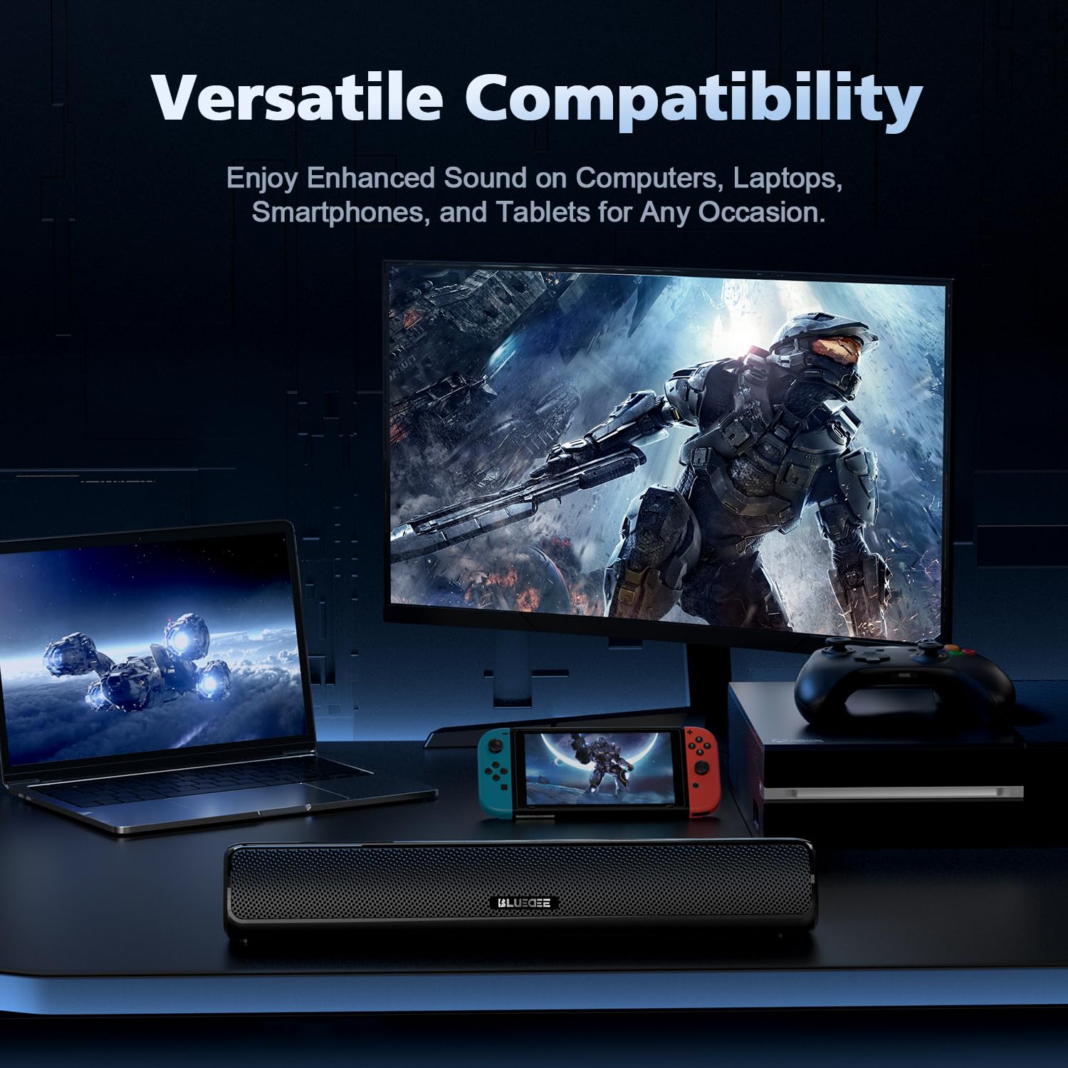 BLUEDEE Computer Speakers for Desktop, HiFi Stereo Poratble PC Speakers, Bluetooth 5.3 and 3.5mm Aux-in Computer Soundbar with Deep Impactful Bass, Gaming Speaker for PC, Laptop, Tablet