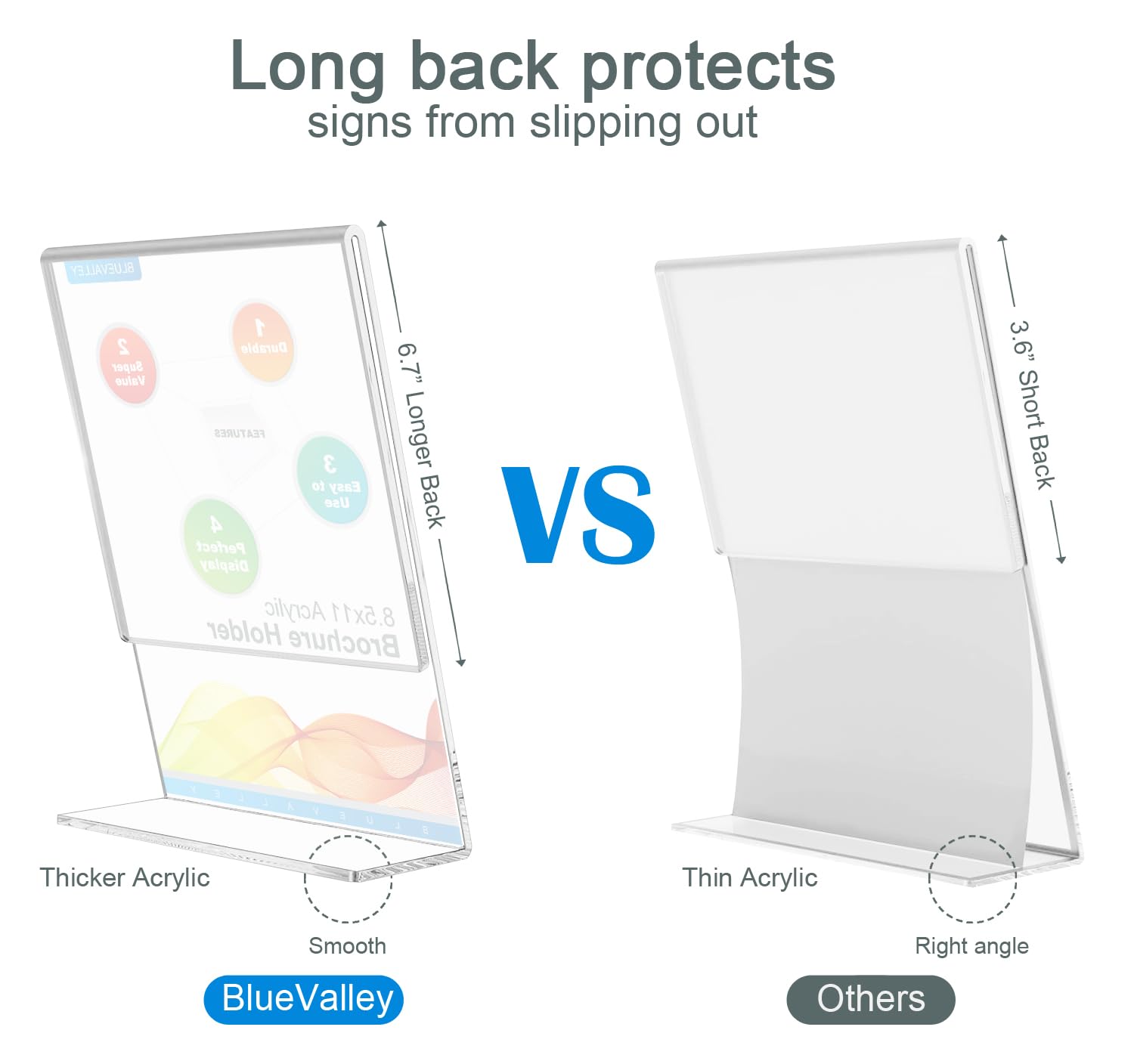 - 【Satisfaction Guarantee & Support】BlueValley provide dependable after-sales support for all our tabletop acrylic sign holder and display racks. 24/7 support via “Contact Seller.” We’ve got your back—buy with confidence. Thanks for choosing Bluevalley!